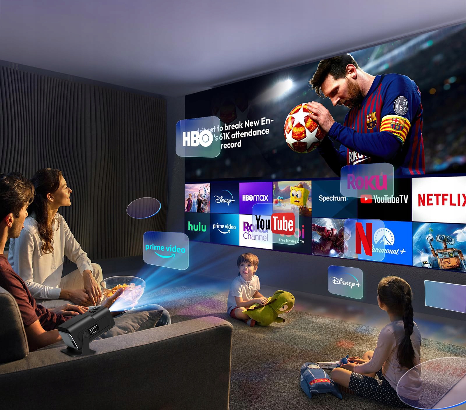 Навіщо вибрати наш продукт? До найпопулярніших програм, таких як youtube , netflix , hbo , spotify та багато інших. Можливість використання Google Play означає, що ви можете встановити додаткові програми, адаптуючи проектор до ваших потреб. Дякую Bluetooth та wifi , ви можете бездротово підключити проект з телефоном, комп'ютером або планшетами, що усуває необхідність використання кабелів. B> Сила та рухливість