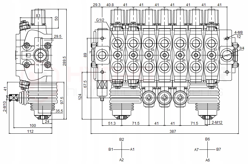 Усі секції, адаптовані для управління двосторонніми або односторонніми циліндрами та двигунами в одному або двох напрямках.