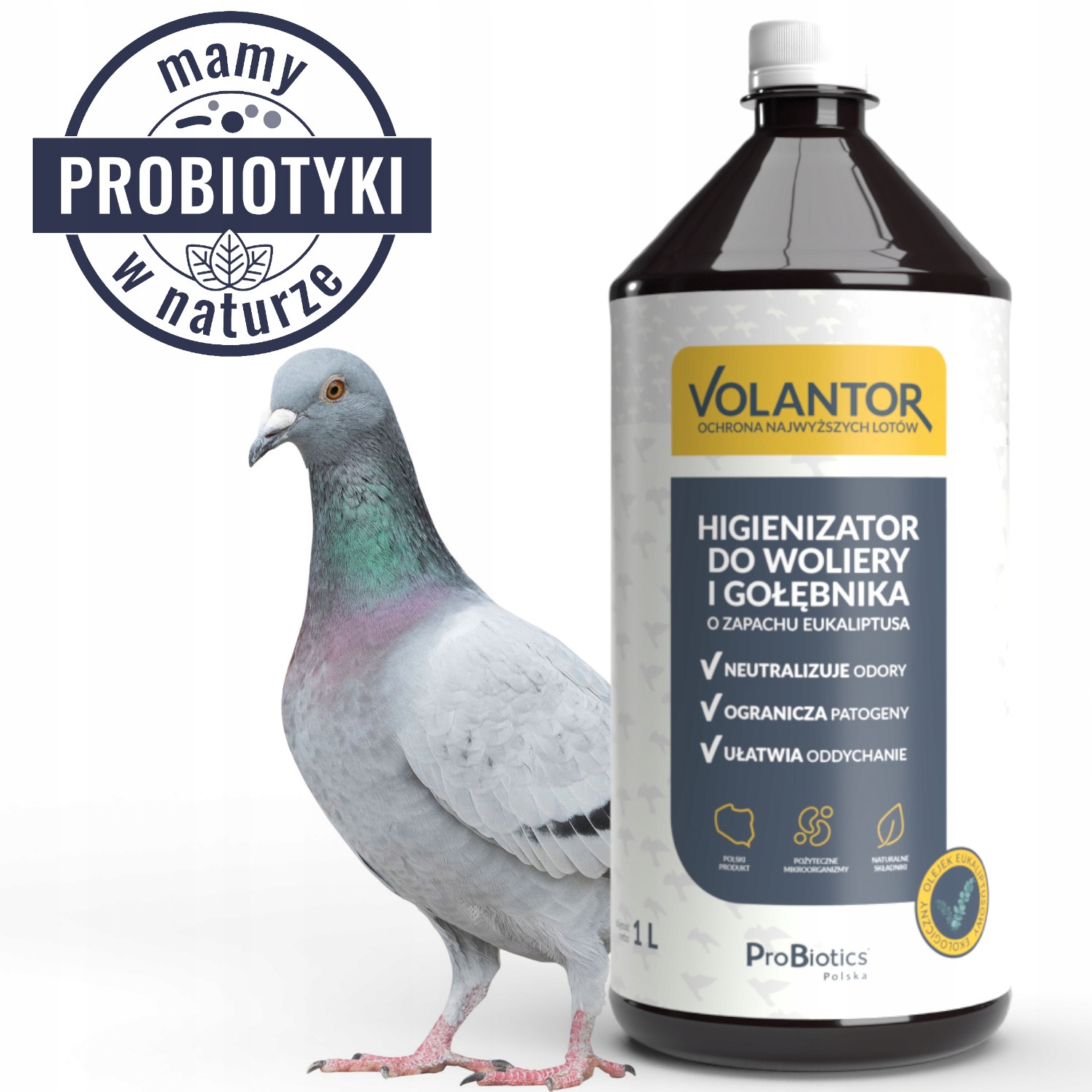 гігієнецикатор Volantor для вольєра та горища - природний рідкий мікробіологічний центр, призначений для гігієнізації кімнат, де залишаються голуби. Використовується систематично оновлювати повітря і дезінфікує горище, покращуючи добробут стада. Завдяки вмісту трав та евкаліптувальної олії, воно надає освіжаючий запах, усуває збудники та очищає дихальні шляхи птахів. Він містить лише природні та генетично немодифіковані інгредієнти, включаючи комплекс живих, активних, корисних мікроорганізмів.