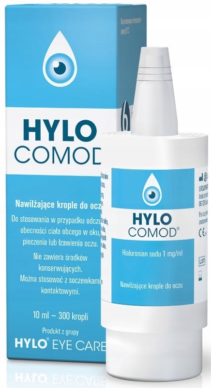 Hylo-Comod покращує зволоження очного яблука при його сухості, спричиненій негативним впливом навколишнього середовища, що викликає такі розлади, як сухість очей, відчуття стороннього тіла в оці , горять очі.