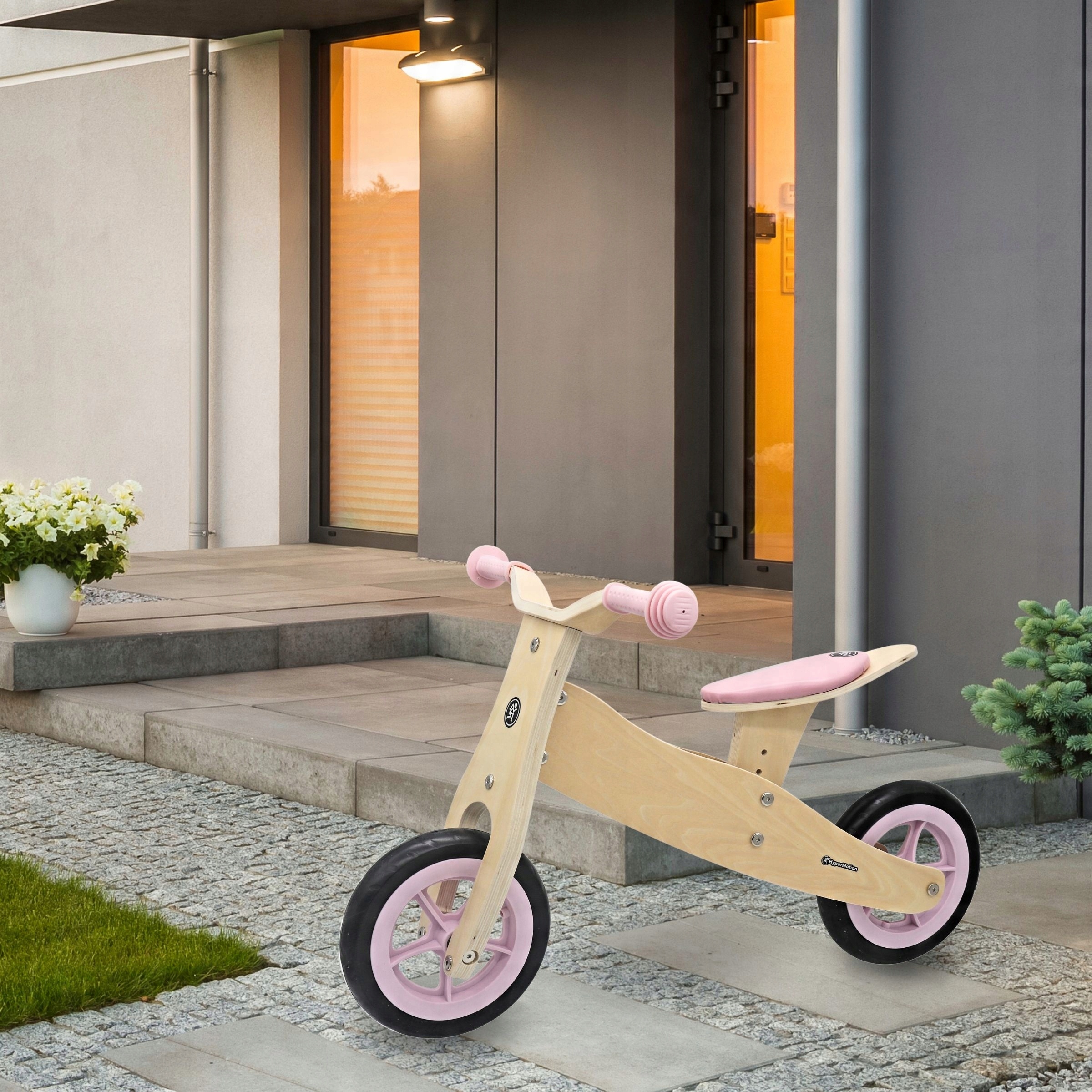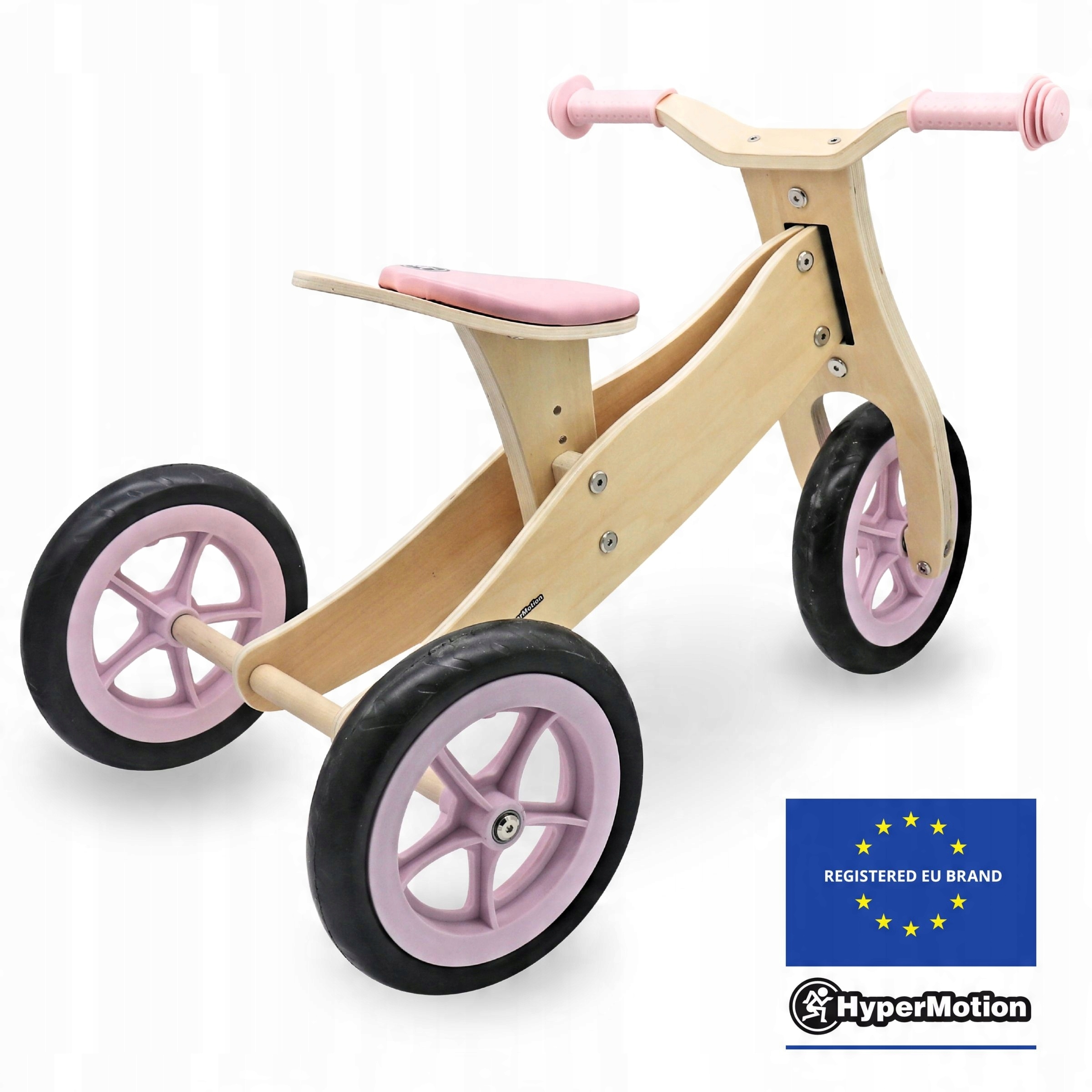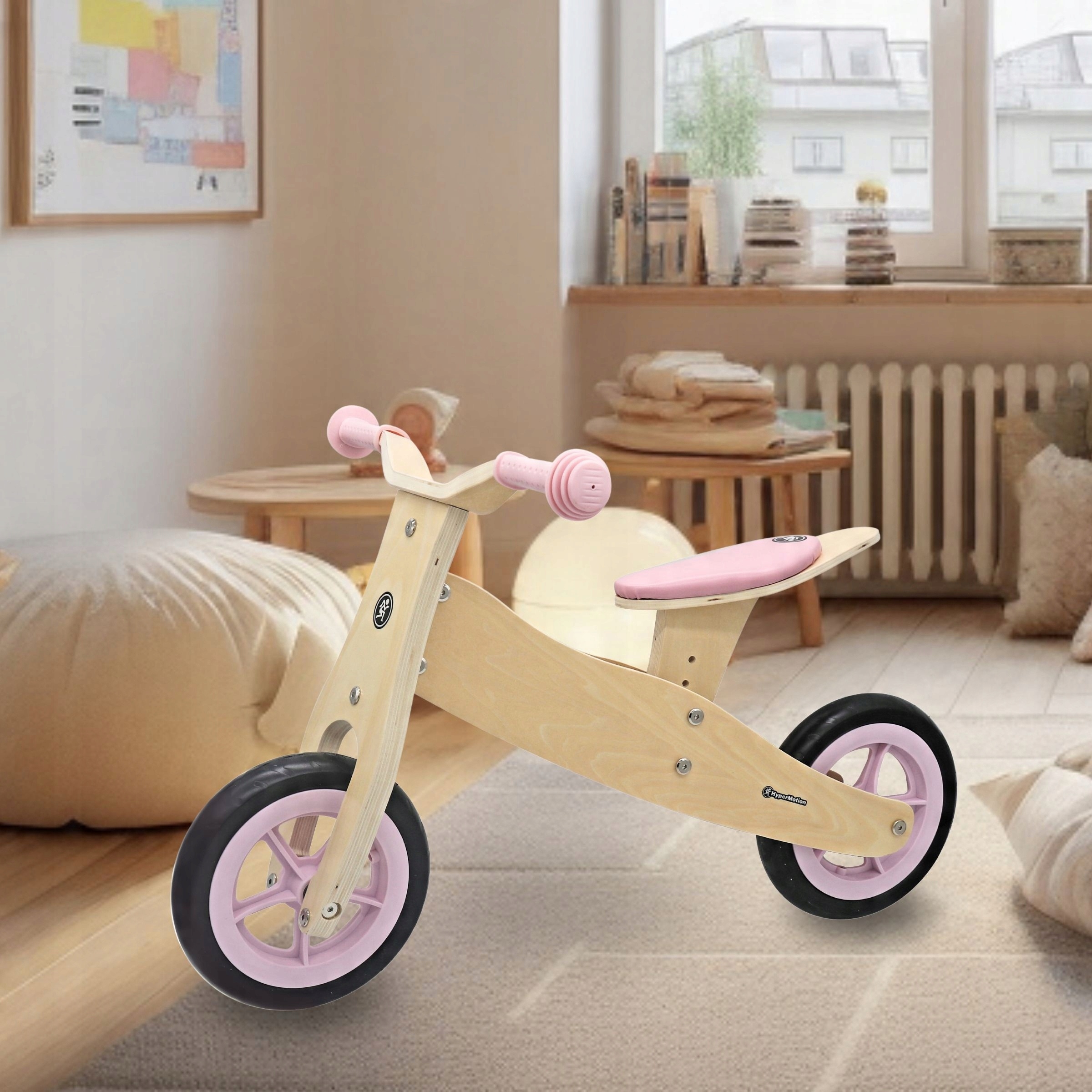 дерев’яний три -колесний та біг велосипед 2in1 -гіпермоція Персі -рожевий