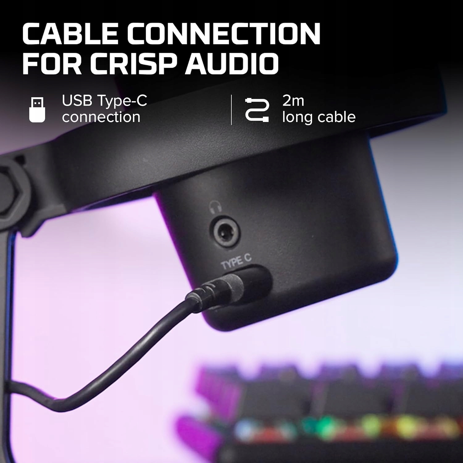 Ви можете підключити мікрофон до комп'ютера через USB-C. Світлодіод на корпусі мікрофонів повідомляє про те, чи наразі гнучкість Hyperx. У вашому розпорядженні є гніздо для навушників, яке ви можете використовувати для прослуховування своїх записів та передачі. Мікрофон має простий, класичний дизайн і не займає багато місця на робочому місці. Стабільна база знижує ризик повороту обладнання.