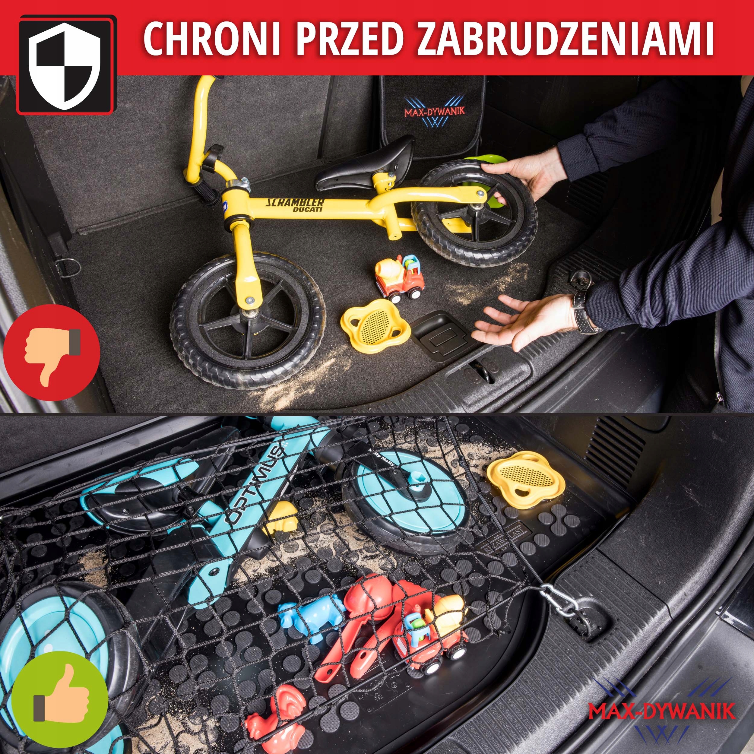 Додатковою перевагою пропонованого килимка є його унікальна гнучкість, завдяки якій під час використання ми все ще маємо доступ до простору під багажником (можливість підняти полицю для доступу до відділень для зберігання або запасне колесо) або витягнути килимок із багажника, щоб почистити його.