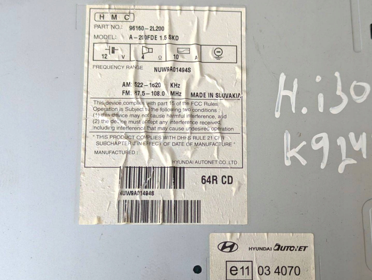 Hyundai I30 FD A Car Radio 2009 96160-2l200