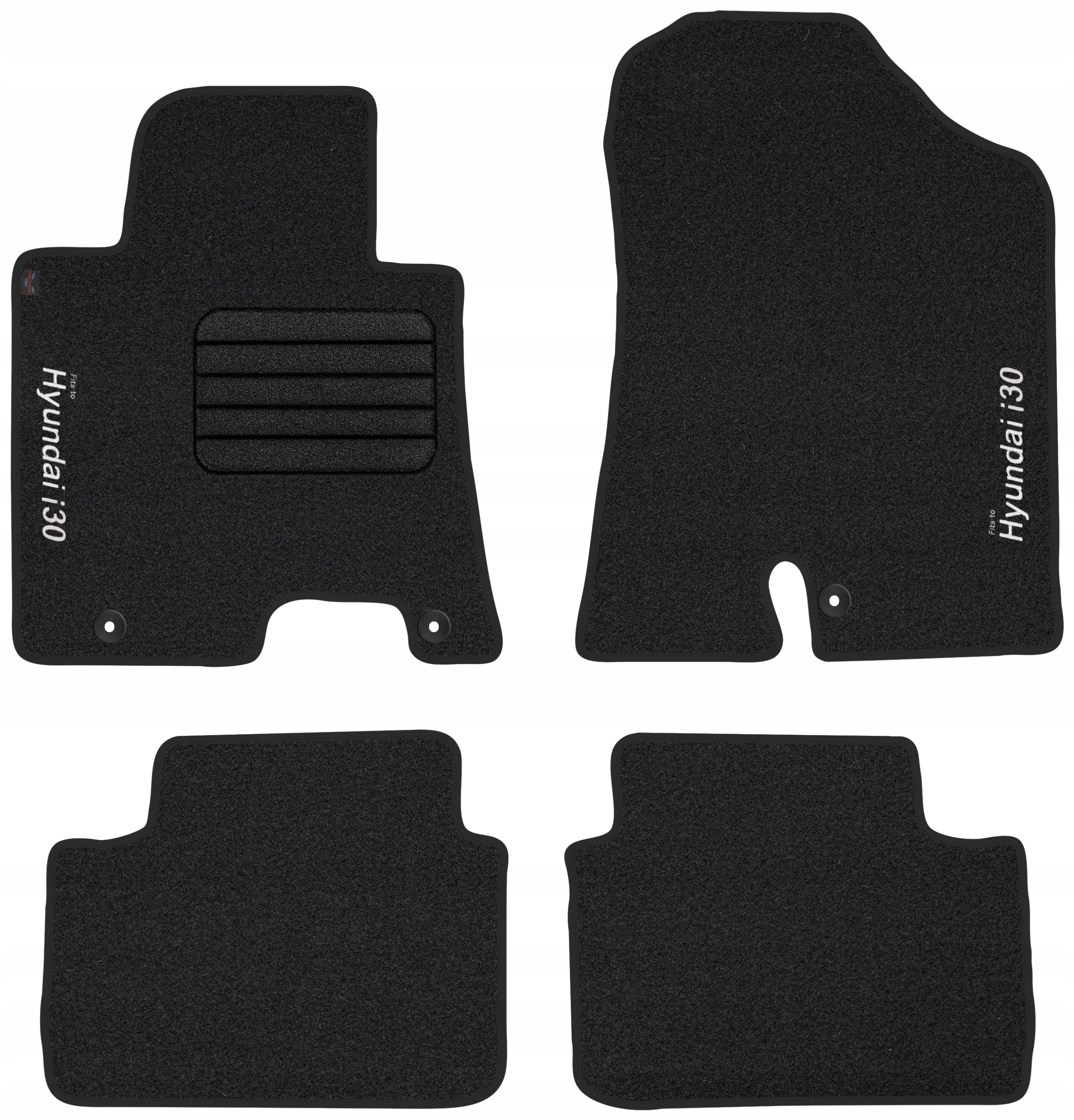 На передніх килимках методом прямої вишивки виконано інформаційний напис "Hyundai i30". Завдяки сучасному виробництву та використанню високоякісних матеріалів і ниток, вишивка на килимках є довговічною та естетичною, що також позитивно впливає на вигляд килимків в салоні автомобіля. Зміст напису на килимках відповідає основному фото (в залежності від моделі або марки автомобіля), а над написом вишуканим шрифтом розміщено напис «Підходить до», який повідомляє про призначення матів.