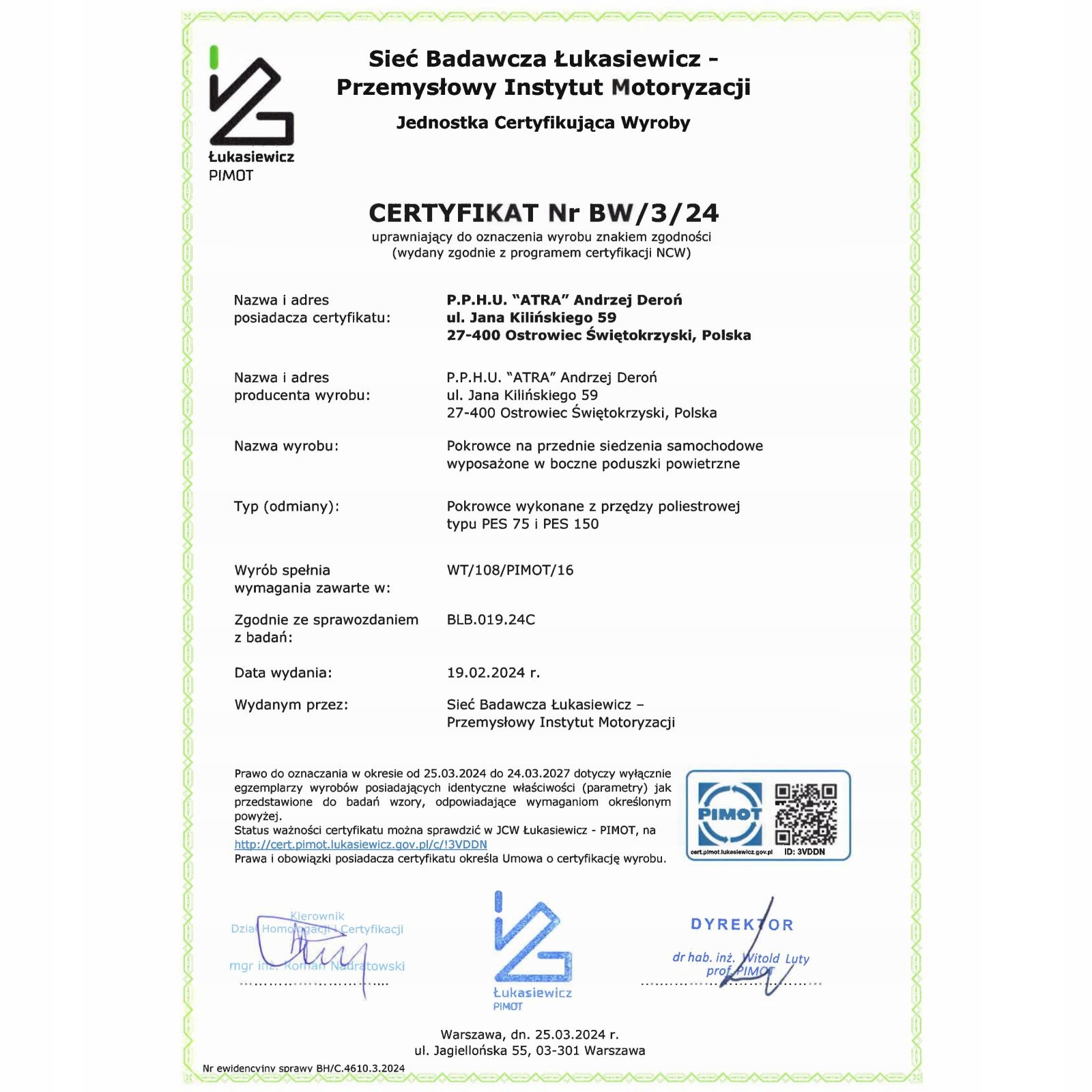 ✔ Безпека - PIMOT подушки безпеки забезпечує сумісність з бічними подушками безпеки.