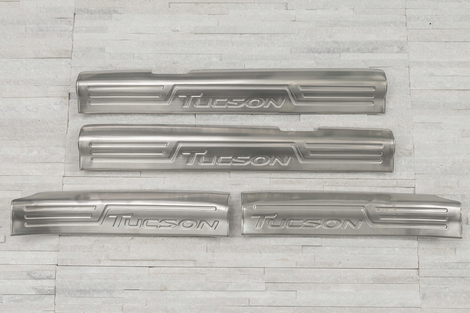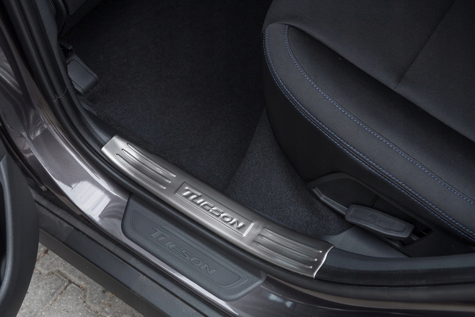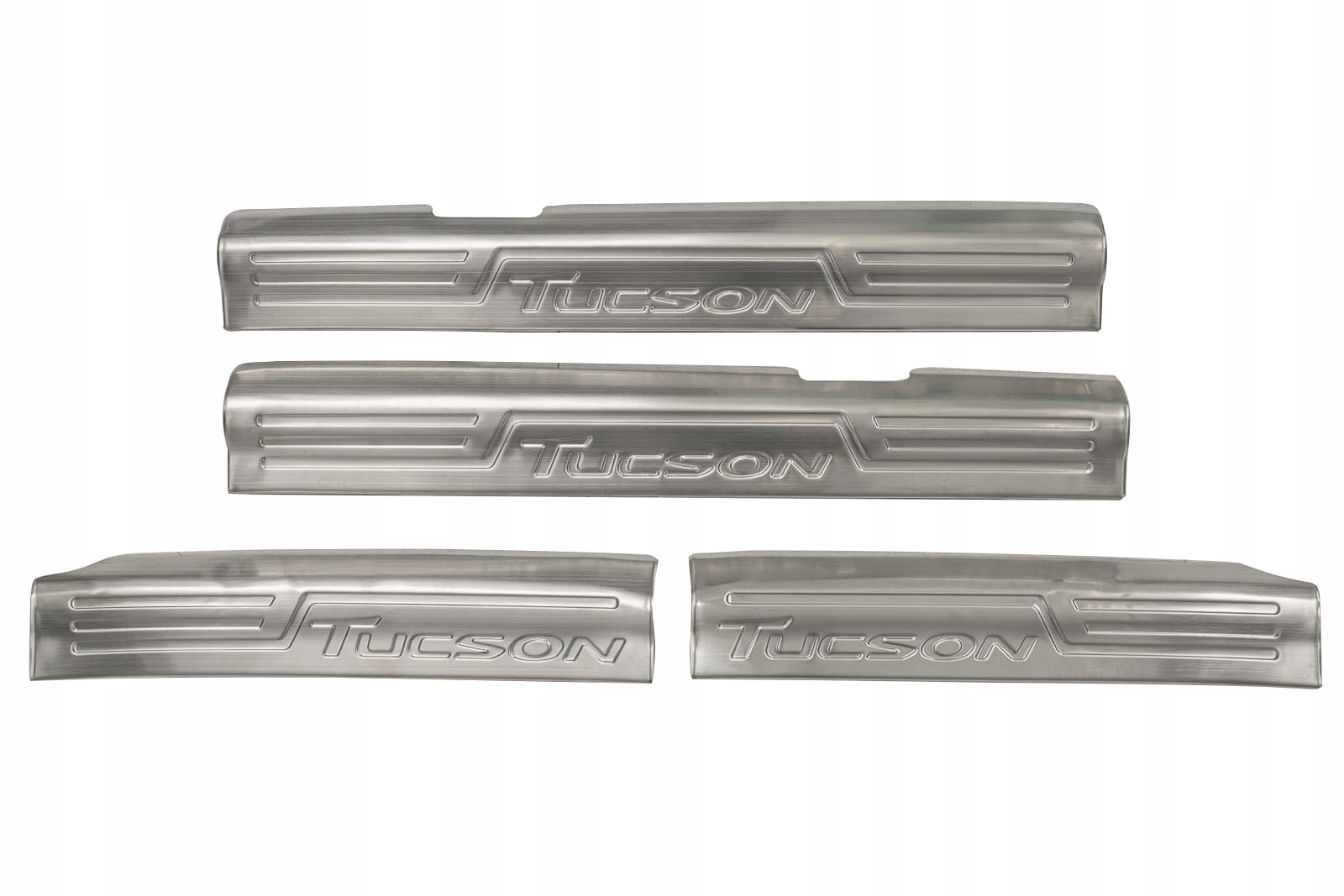 Планки кріпляться на верхні, пластикові частини внутрішніх порогів. Вони доповнюють внутрішню лінію дверей і надають поріжку спортивно-елегантний вигляд. Ця модель привертає увагу декоративним тисненим написом TUCSON, який прикрашає кожну смужку.