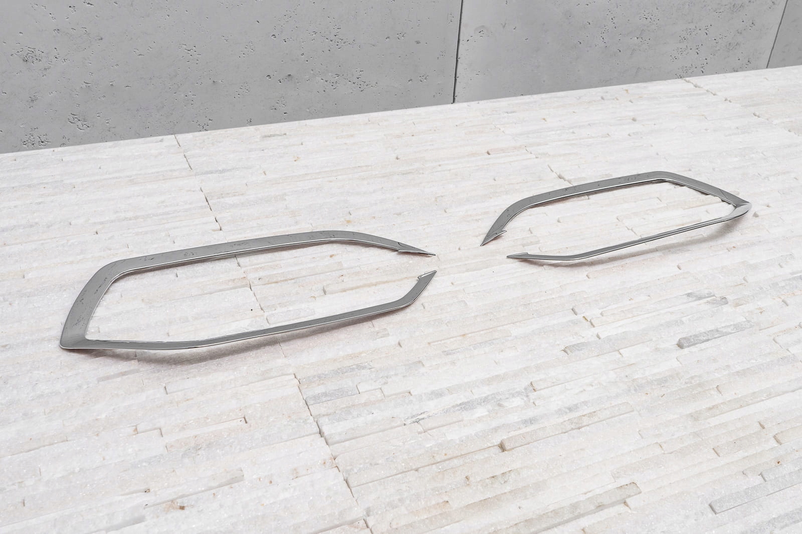 В набір входить набір з двох галогенних чохлів. Виріб виготовлено з високоякісного хромованого ABS пластику. Вони збираються за допомогою двостороннього клею, нанесеного на внутрішню сторону елементів. Рекомендуємо професійний монтаж.