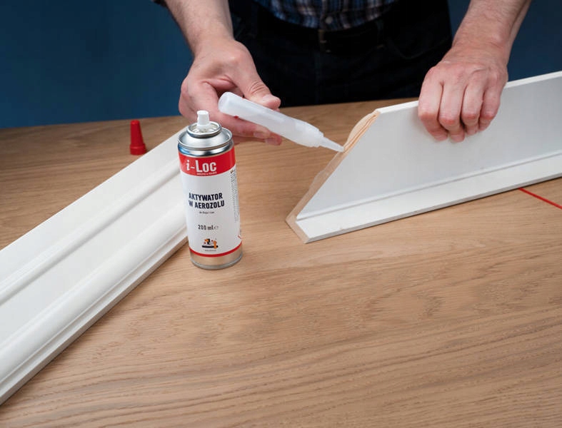 Швидкосхоплюючий однокомпонентний ціаноакрилатний клей із міцними та довговічними адгезивними властивостями. Для швидкого склеювання профілів з дерева, фанери, МДФ та інших матеріалів, які використовуються в меблевій промисловості. Використовується у виробництві меблів, дверей, декоративних і декоративних елементів, особливо корисно при склеюванні елементів під кутом 45°. Дуже швидко твердне, стик непомітний, стійкий до старіння, вологи та несприятливих погодних умов. З'єднання залишається міцним і стійким до навантажень.
