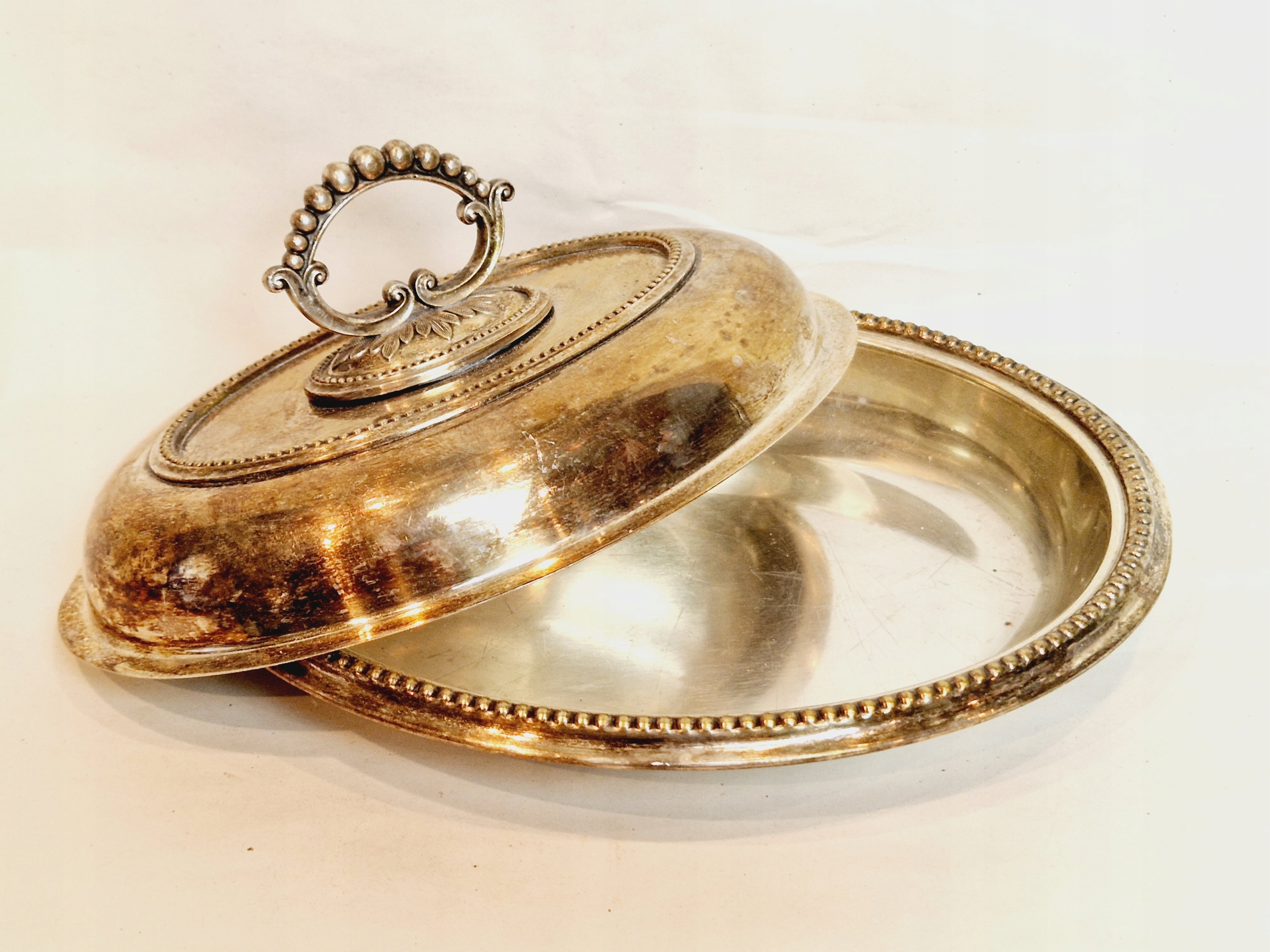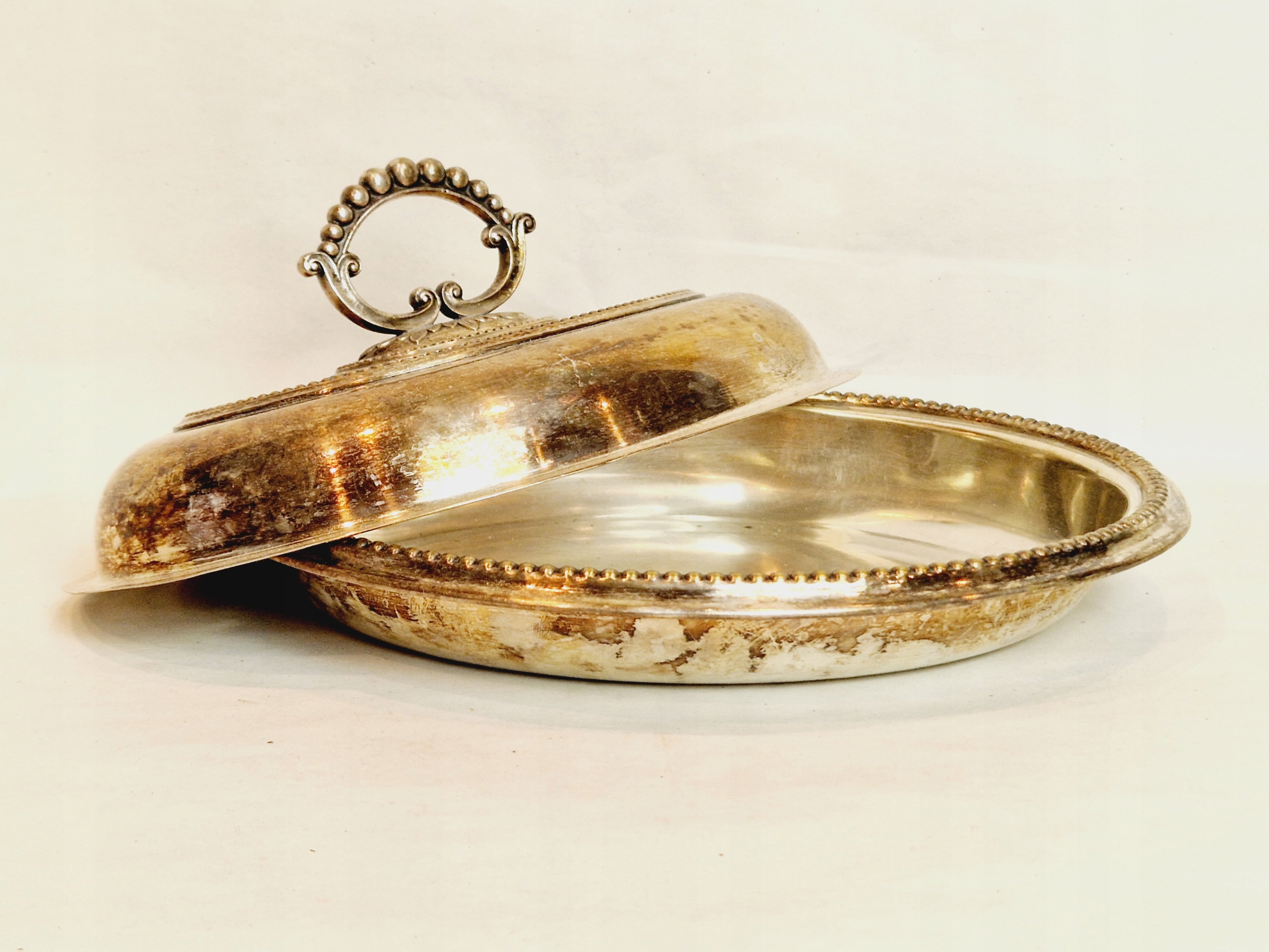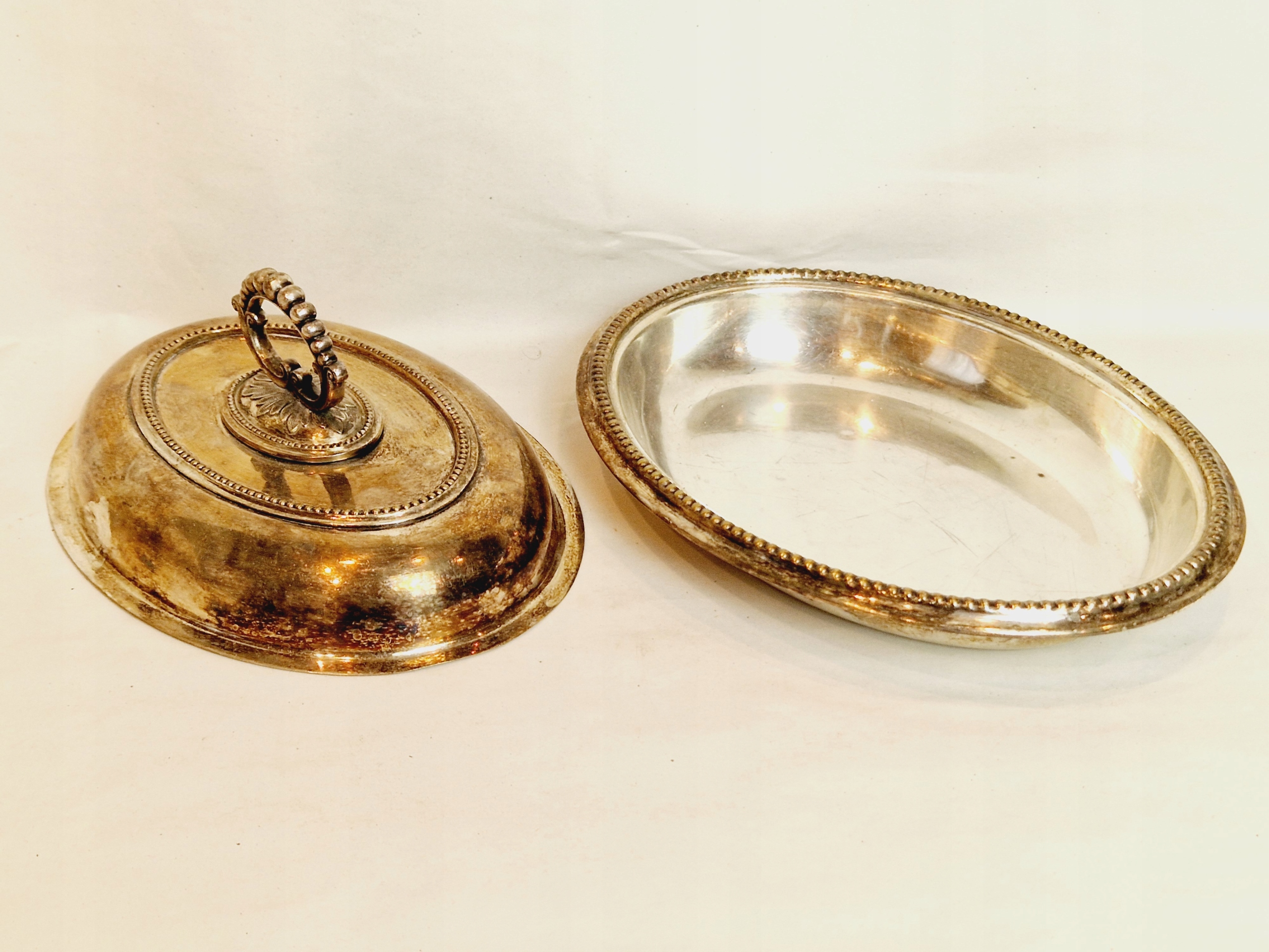 I poł. XXw / ZABYTKOWY POSREBRZANY PÓŁMISEK (25,7 x 19,5) Z POKRYWĄ /4289