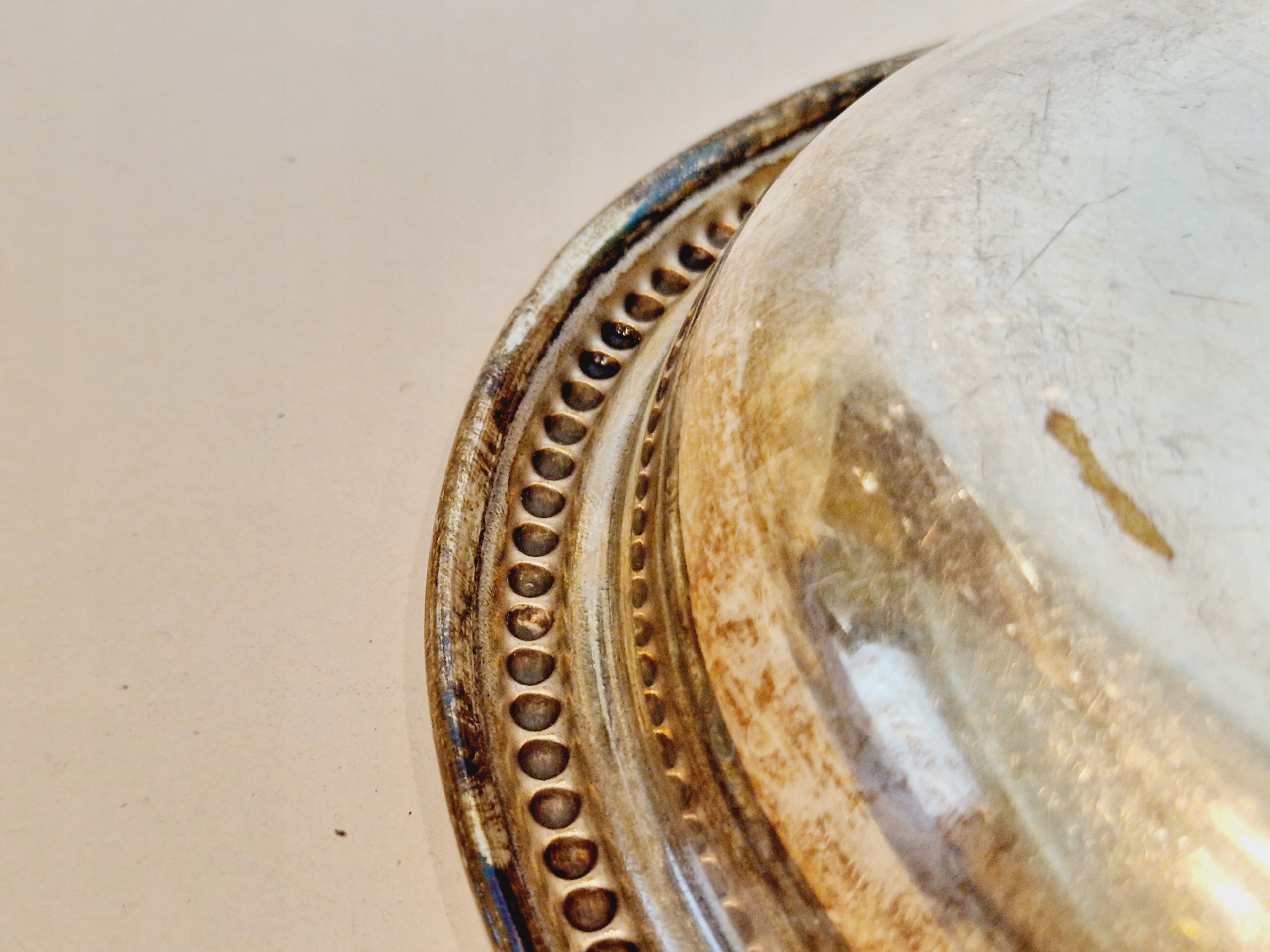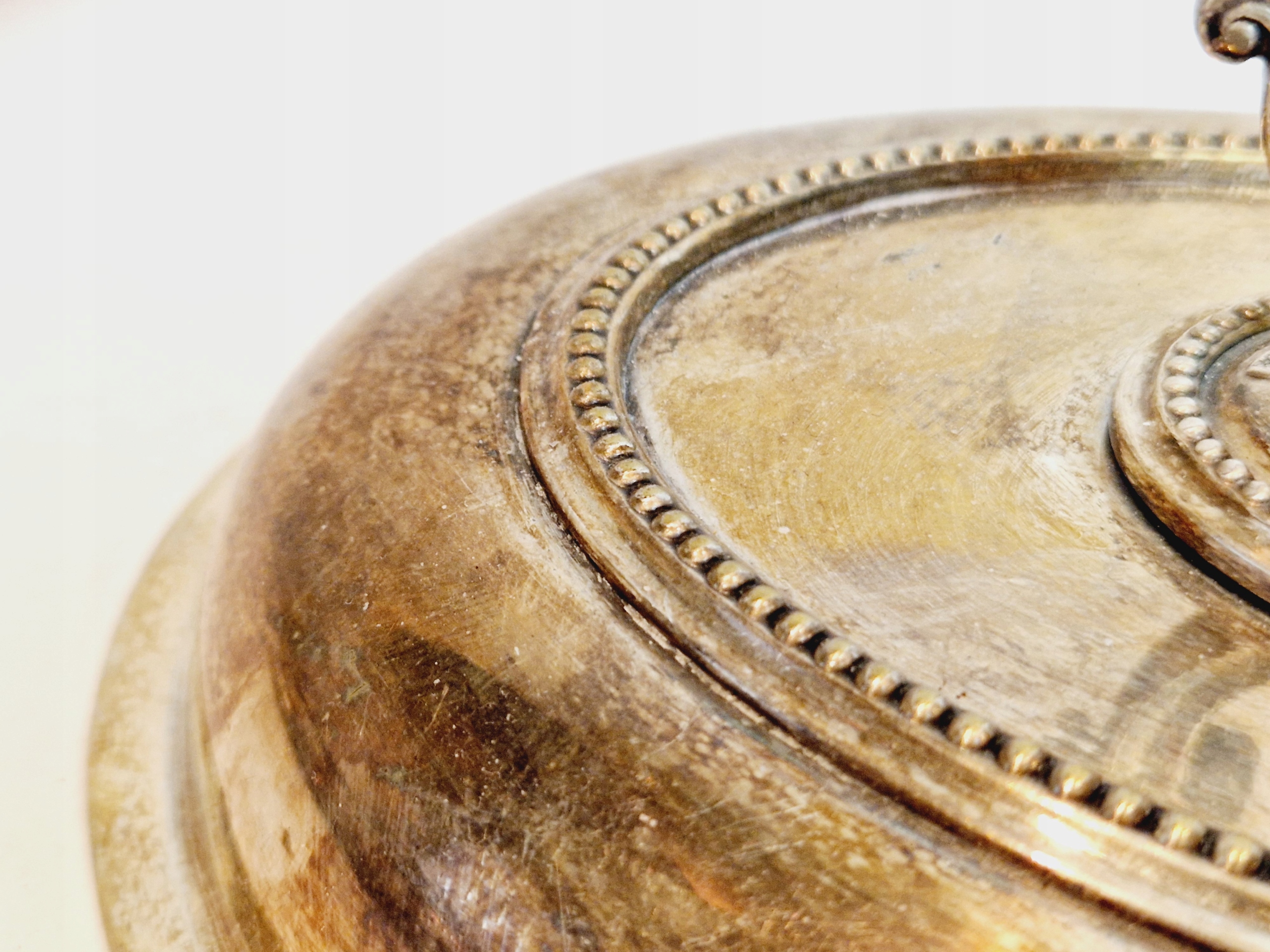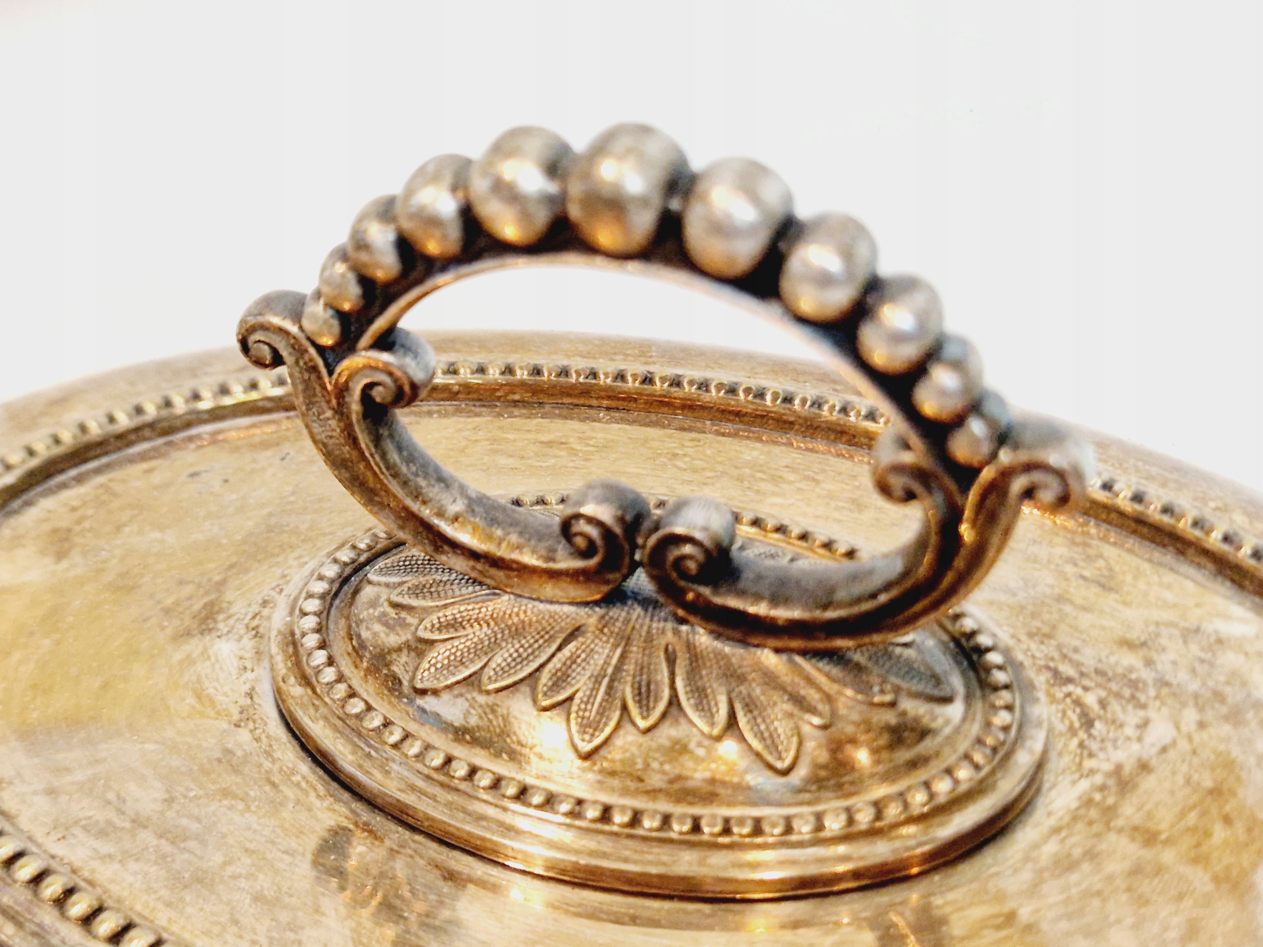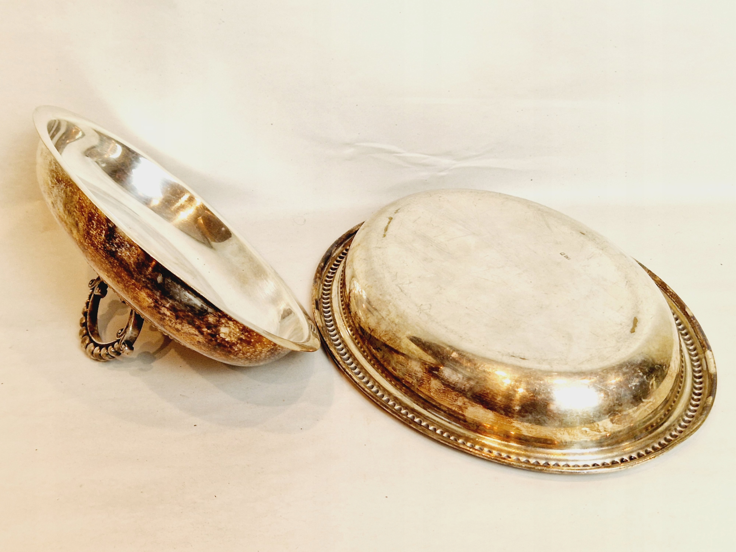 I poł. XXw / ZABYTKOWY POSREBRZANY PÓŁMISEK (25,7 x 19,5) Z POKRYWĄ /4289