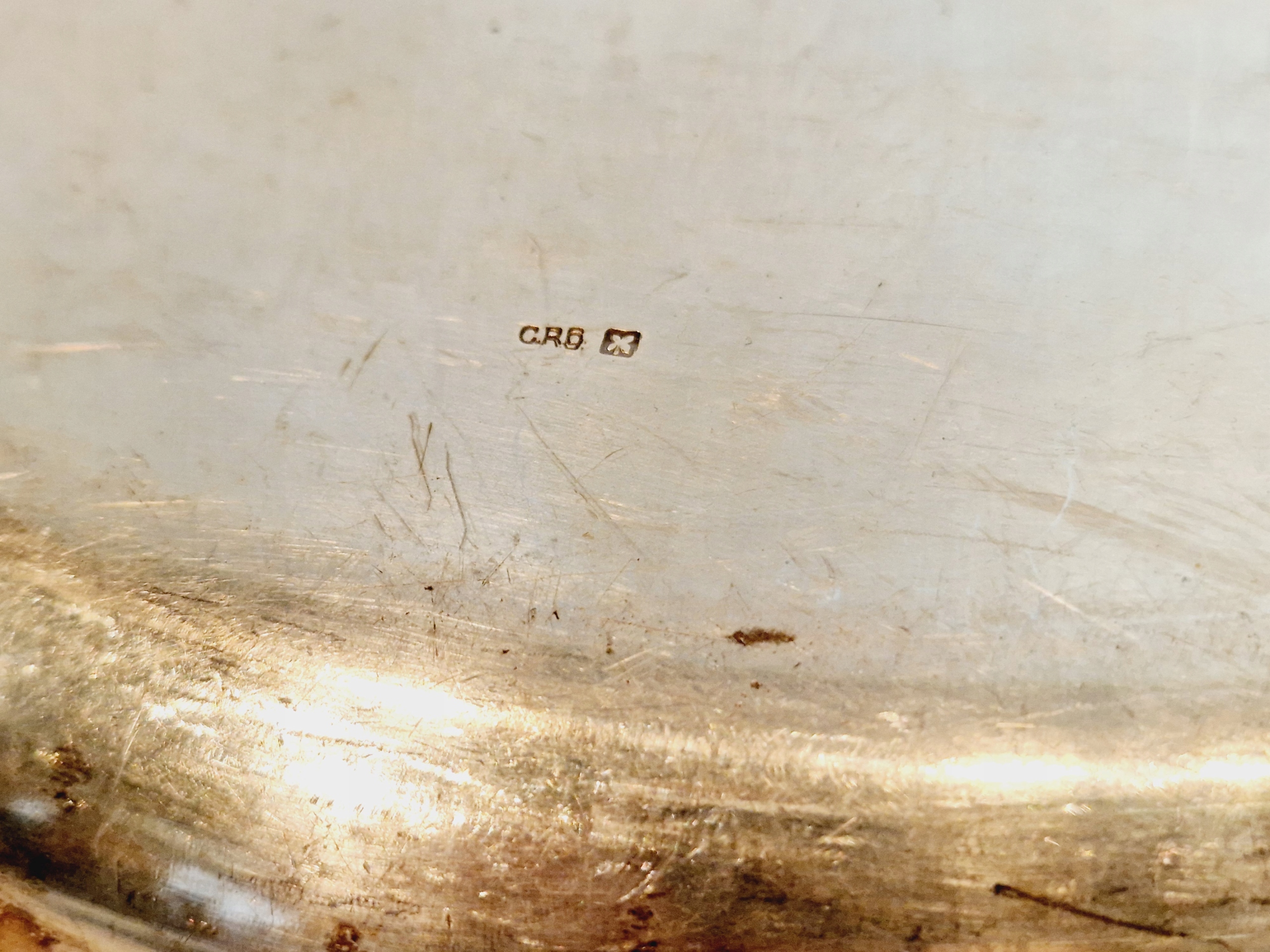 Він має оригінальне срібне покриття з трьома невеликими потертостями на краю дна - без істотного візуального значення.