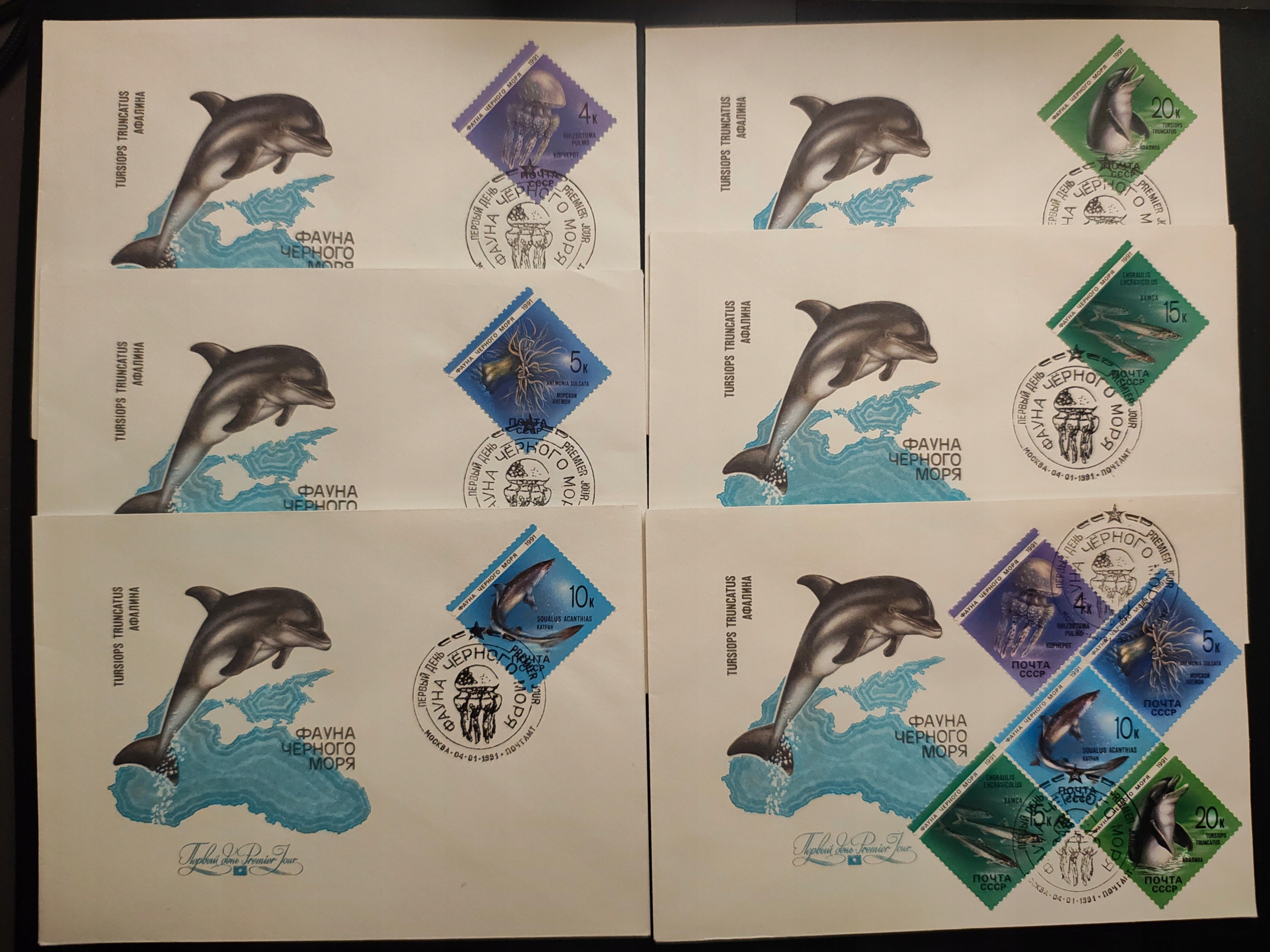 !i ZWIERZĘTA RYBY - ROSJA CCCP 1991 - 6 KOPERT FDC - STAN BDB !