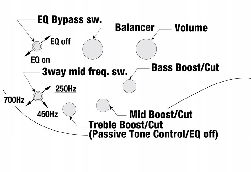 - Електроніка: 2 x Ibanez Custom Electronics 3-смуговий еквалайзер з перемикачем обходу еквалайзера (пасивний контроль тембру на високих частотах) і перемикач середніх частот
