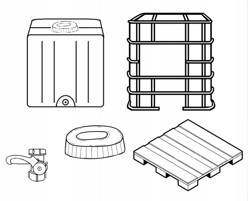 Нижній клапан для спорожнення контейнера та верхня кришка, що відкручується, для підключення жолоба. Можливість використовувати насос для спорожнення контейнера через заливний отвір.