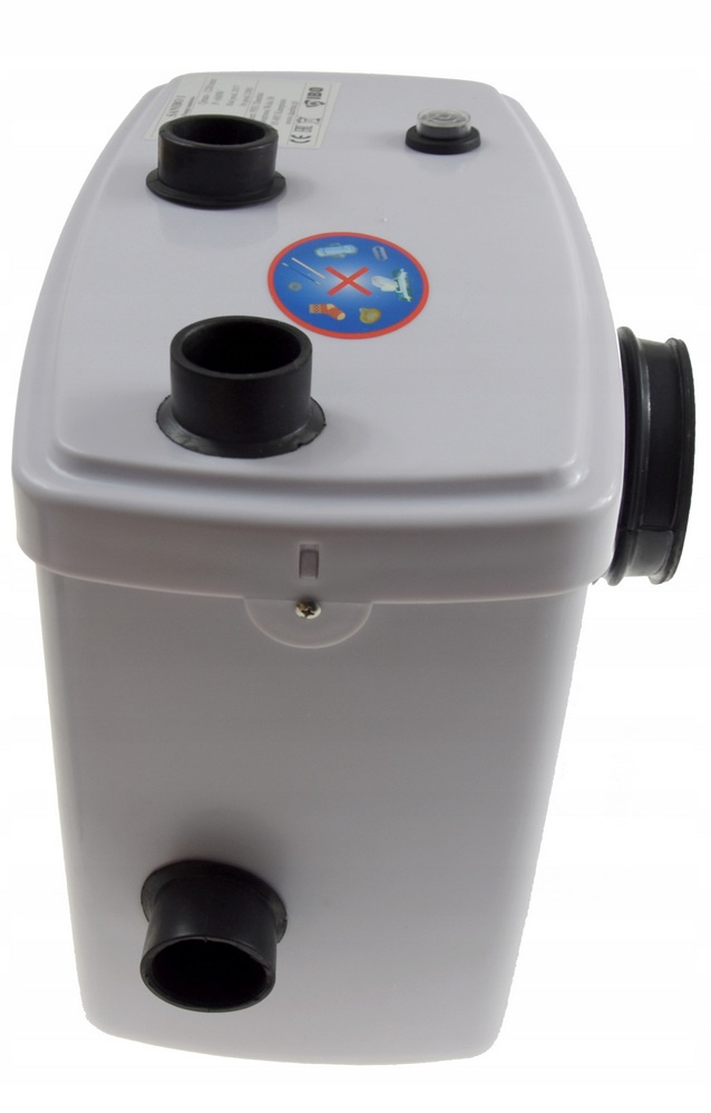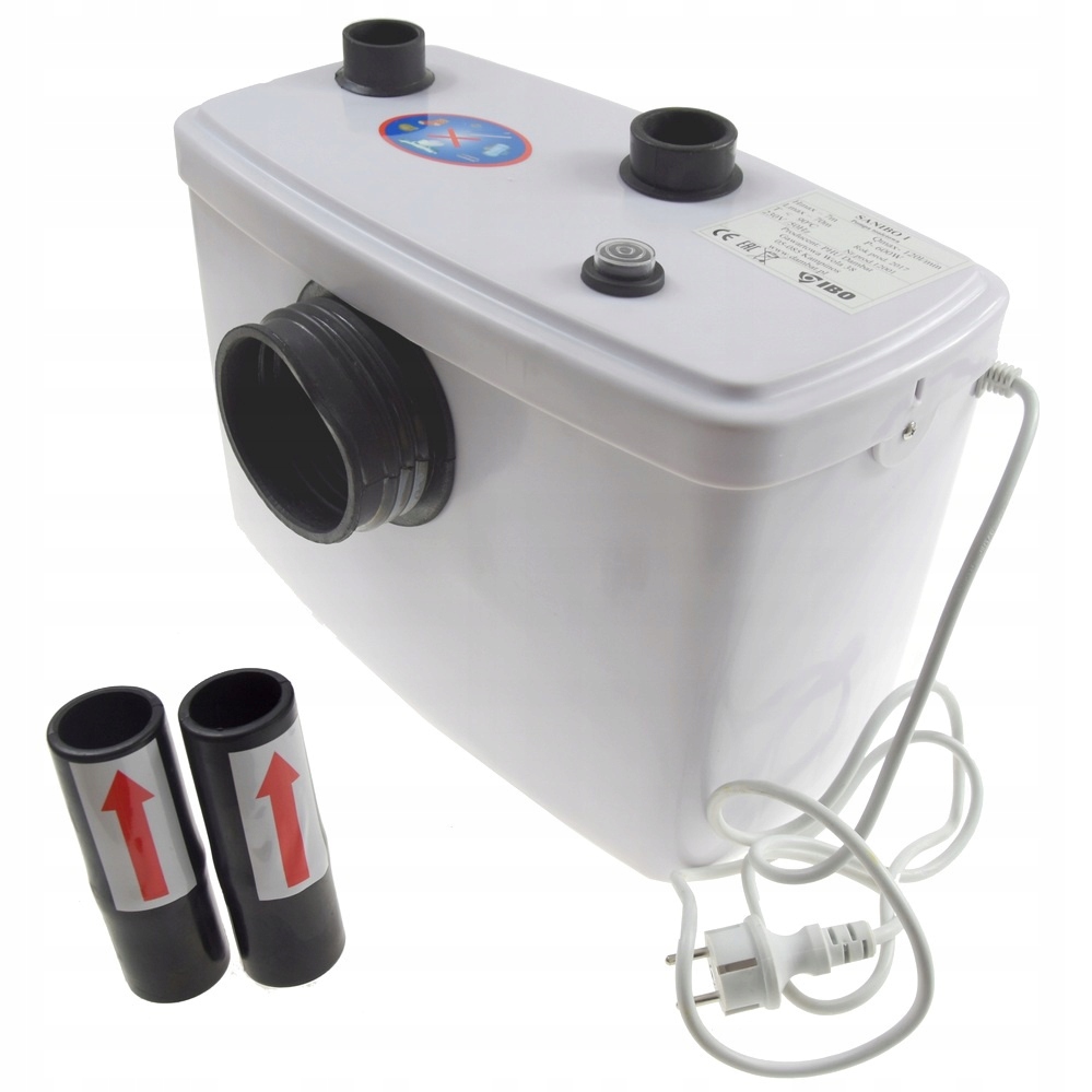 Насос для туалетів Sanibo1 — це повністю автоматичний пристрій, призначений для зливу стічних вод з унітазу, умивальника або раковини. Насос характеризується виключно тихою роботою, що робить його ідеальним для домашнього використання. Він ідеально підходить для ванних кімнат, де туалет розташований за межами каналізаційної лінії або нижче рівня виходу стічних вод з будівлі. Насос оснащений перемикачем, який автоматично контролює його роботу - після заповнення приладу насос автоматично включається. Крім того, насос також можна запустити вручну. Висота підйому 7 метрів по вертикалі і 70 метрів по горизонталі повністю виключає потребу в самопливному дренажі. Робочий цикл становить приблизно 8 секунд. Насос містить затискачі з нержавіючої сталі та набір заглушок, що робить пристрій дуже універсальним