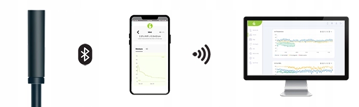 , оснащений точним датчиком зонда, вимірює вологість у діапазоні від 0 до 70% від об'єму води (AVR) та ЕК в діапазоні 0–10 мс/см з високим рівнем. резолюція. Завдяки можливості коригування частоти вимірювання (від 5 до 40 хвилин), користувач має повний контроль над частотою читань. Ґрунтова кількість збирає дані до 100 днів і працює на одному акумуляторі AAA. Застосування: