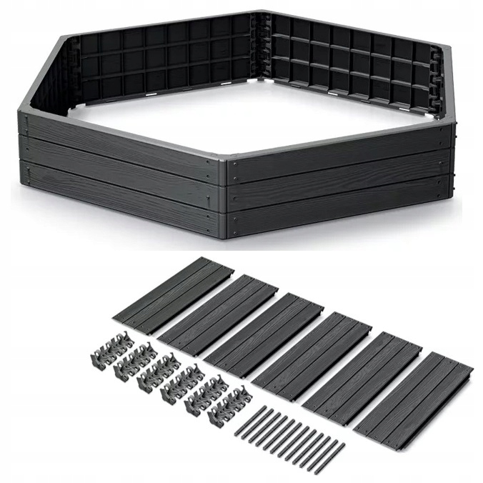 Підвищена грядка, висока підставка для квітів, шестикутний вазон, колір антрацит, 129 см x висота - 25 см