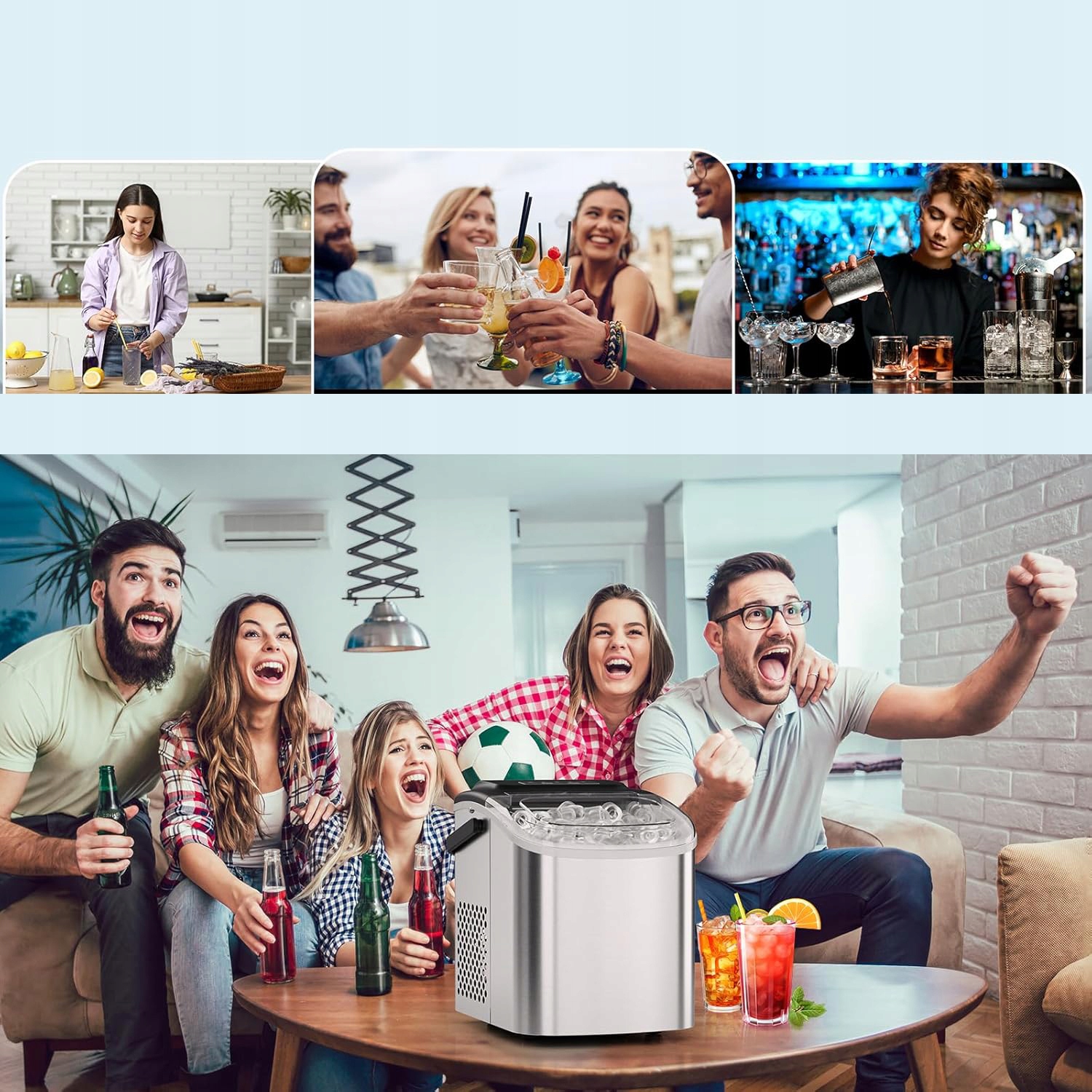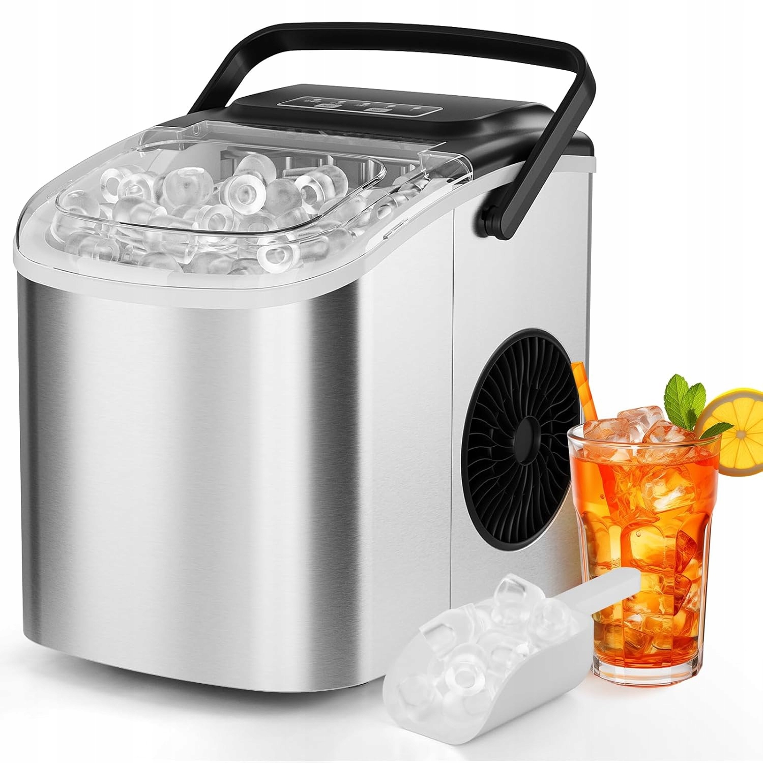 - оснащений вдосконаленою технологією конденсації та тихим вентилятором, може швидко і тихо перетворити воду в лід. У встановленні немає необхідності завдяки безкоштовній структурі. Цей портативний дизайн працює тихо, рівень шуму нижче 41 децибела, як і робочий холодильник.