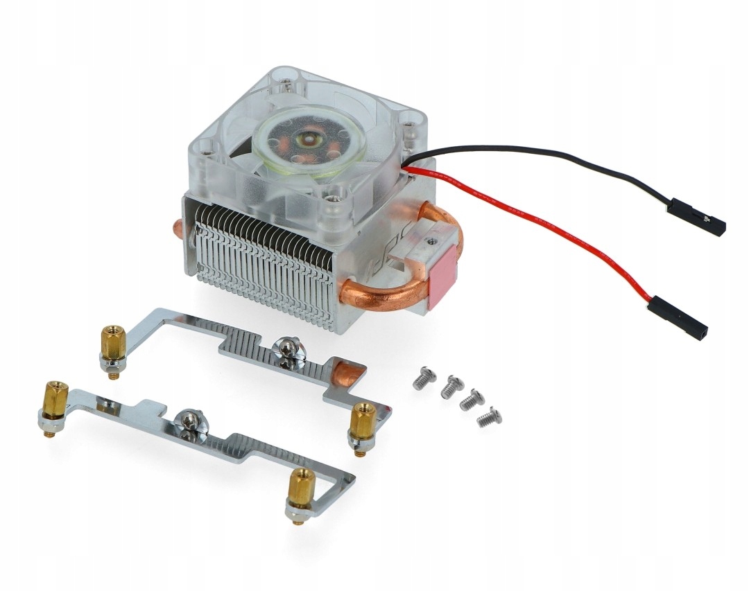 Вентилятор охолодження процесора крижаної вежі є активним охолодженням для Raspberry Pi 4b/3b+/3b будівництва вежі. Завдяки використаним елементам та конструкції температура підтримується при 36 ° С без завантаження, живиться від напруги 5 В, а середнє споживання електроенергії становить приблизно 0,08 А. Крім того, вентилятор має світлодіодну підсвічування RGB.
