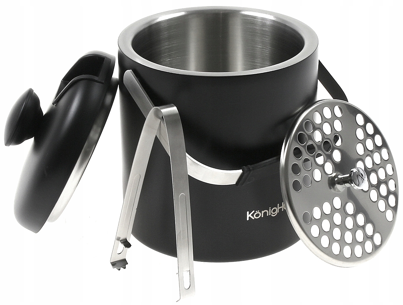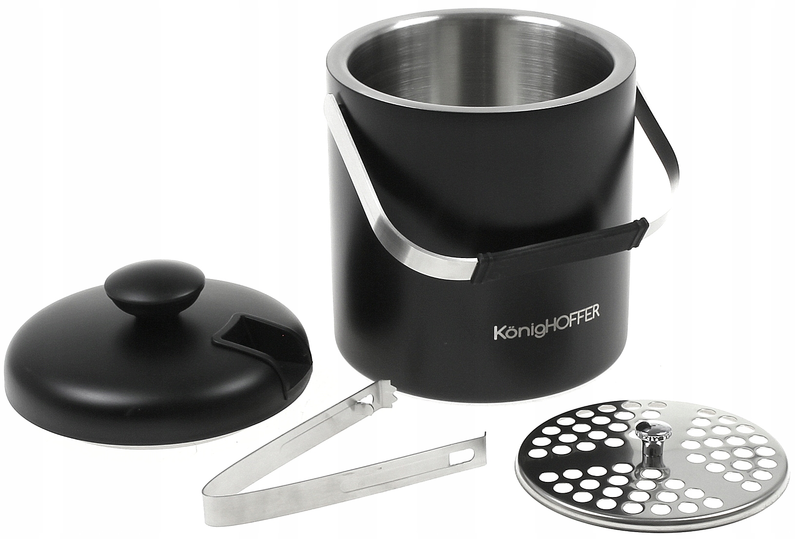 Модель відра KonigHOFFER LUGO розроблена з використанням сплаву нержавіючої сталі та міцного чорного пластику. У цьому випадку виробник подбав про те, щоб доповнити привабливий дизайн, додавши дуже хороший рівень функціональності. Підтримуючи прохолодний рівень протягом багатьох годин, дозволяючи кубикам зберігатися в такому стані, який дозволяє легко порціонувати та охолоджувати напої. Відерце продається в комплекті з практичними щипцями для льоду.