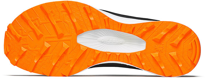 Гумова підошва RB9X має малюнок протектора тракторної шини, що дає змогу бігунам брати участь у перегонах у дійсно різних складних умовах. Грязь витісняється за межі підошви і не прилипає до неї, що запобігає набору додаткової ваги взуття.