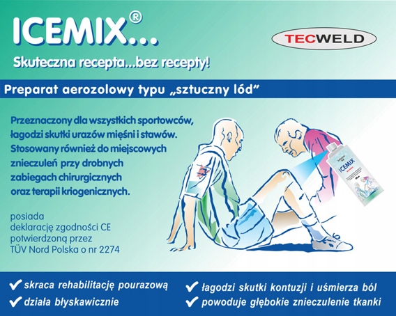 ICEMIX знімає біль, миттєво знижуючи температуру тіла при місце ураження.