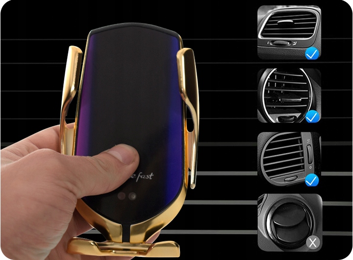 Цей автоматичний тримач із вбудованим індуктивним зарядним пристроєм заряджатиме ваш телефон без під’єднання БУДЬ-ЯКОГО кабелю, а завдяки інфрачервоному датчику та вбудованому механізму автоматично закриватиме SAM одразу після виявлення телефону.