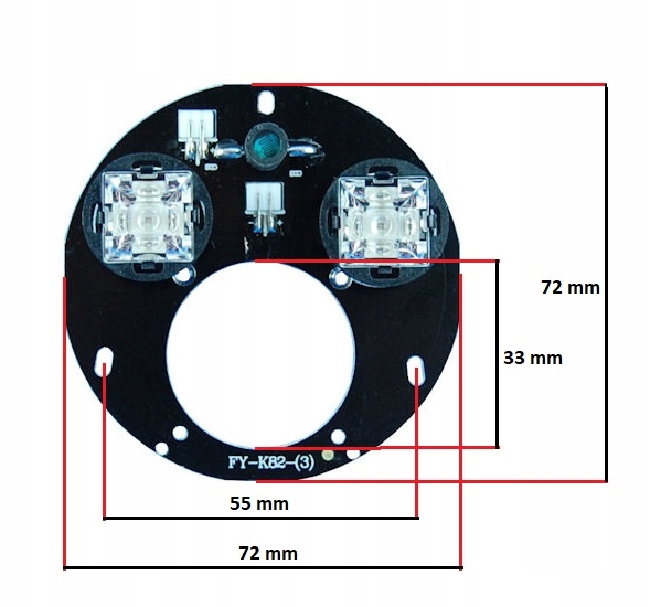 ІЧ ІНФРАЧЕРВОНИЙ ОСВІТЛЮВАЧ 850 нм 15 м ІНФРАЧЕРВОНИЙ ВІДБИВАЧ 72 мм 2 ДІОДИ FY-K82 МОДУЛЬ