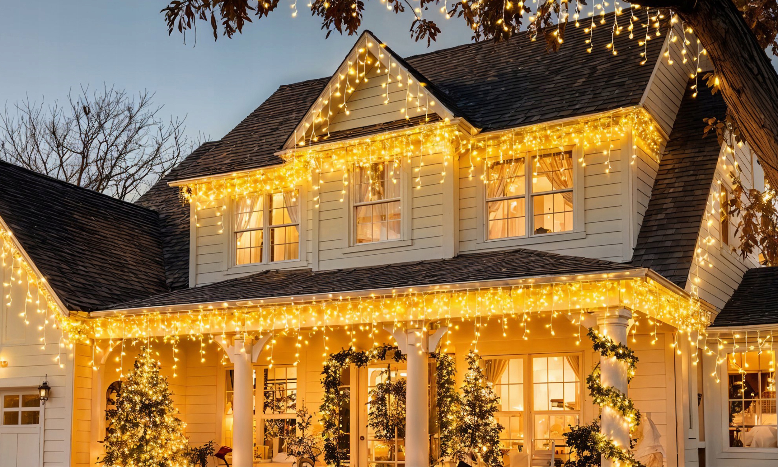- Фасад/дах будинку - ліхтарі, що звисають з даху чи жолобів, створюють ефект «льодових бурульок», що додає будівлі різдвяного шарму та приваблює людей. око.
