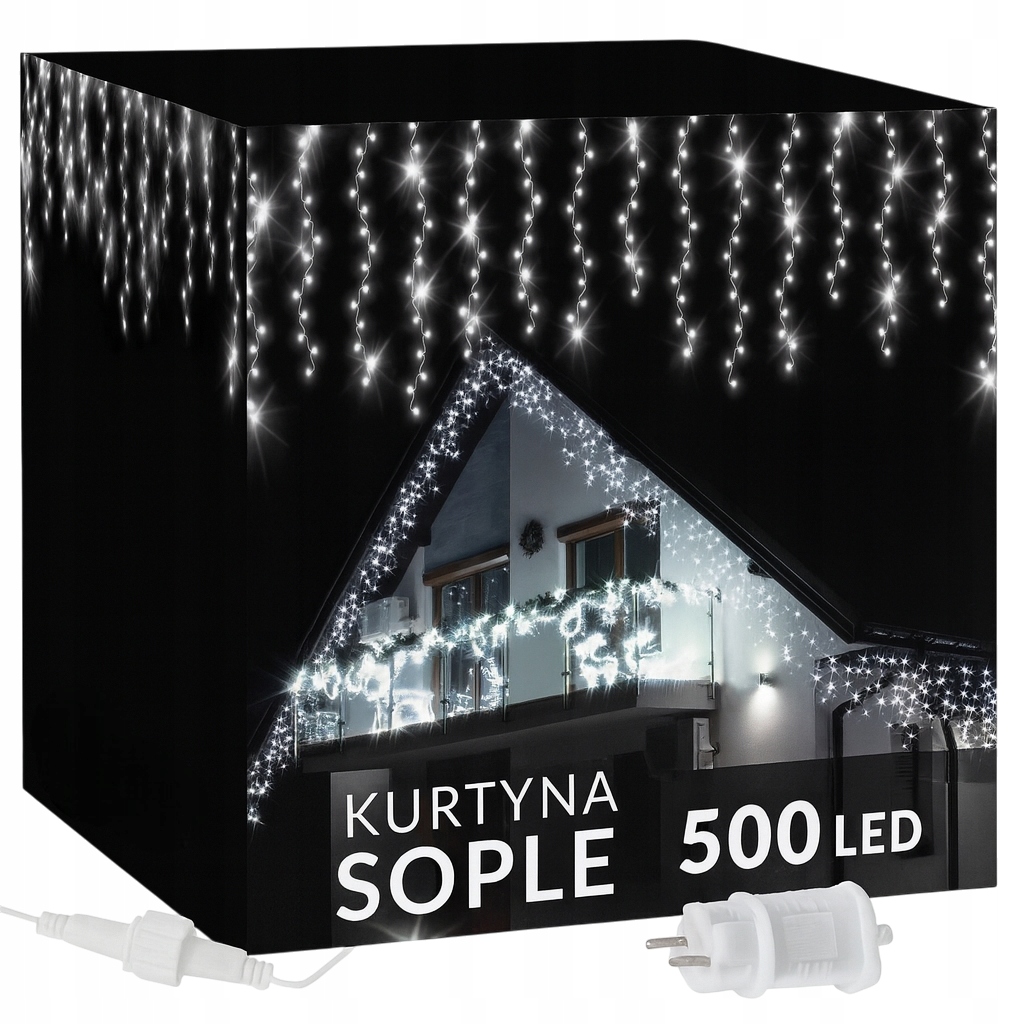 ICILICAL ЛАМПИ 500 LED ЗОВНІШНЯ ХОЛОДНА БІЛА 24м ГІРЛЯНД IP44 ЕФЕКТ СПАЛАХУ