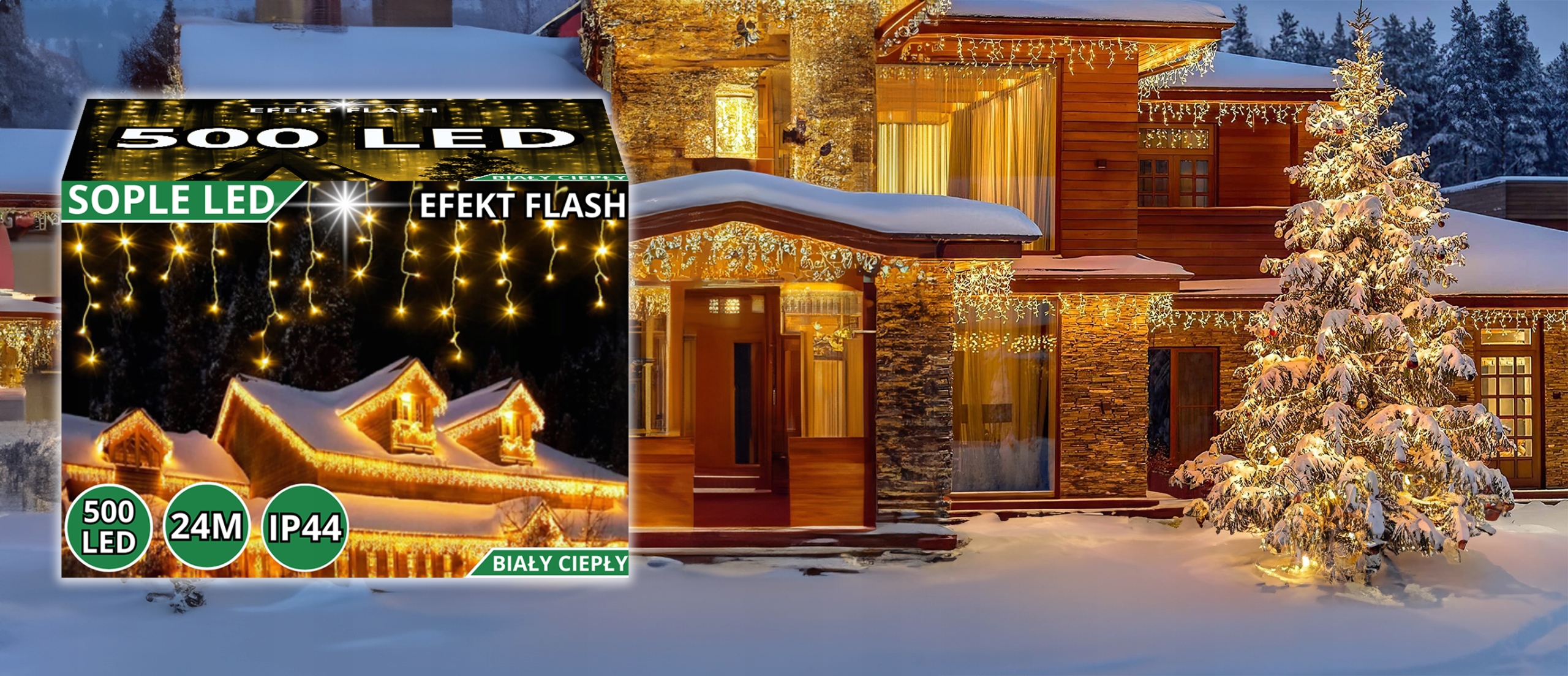 ICILS LED 500 ТЕПЛІ ПІДВІСНІ ЛАМПИ 24 М ЗОВНІШНИЙ ІНТЕР'ЄР З ЕФЕКТОМ СПАЛАХУ