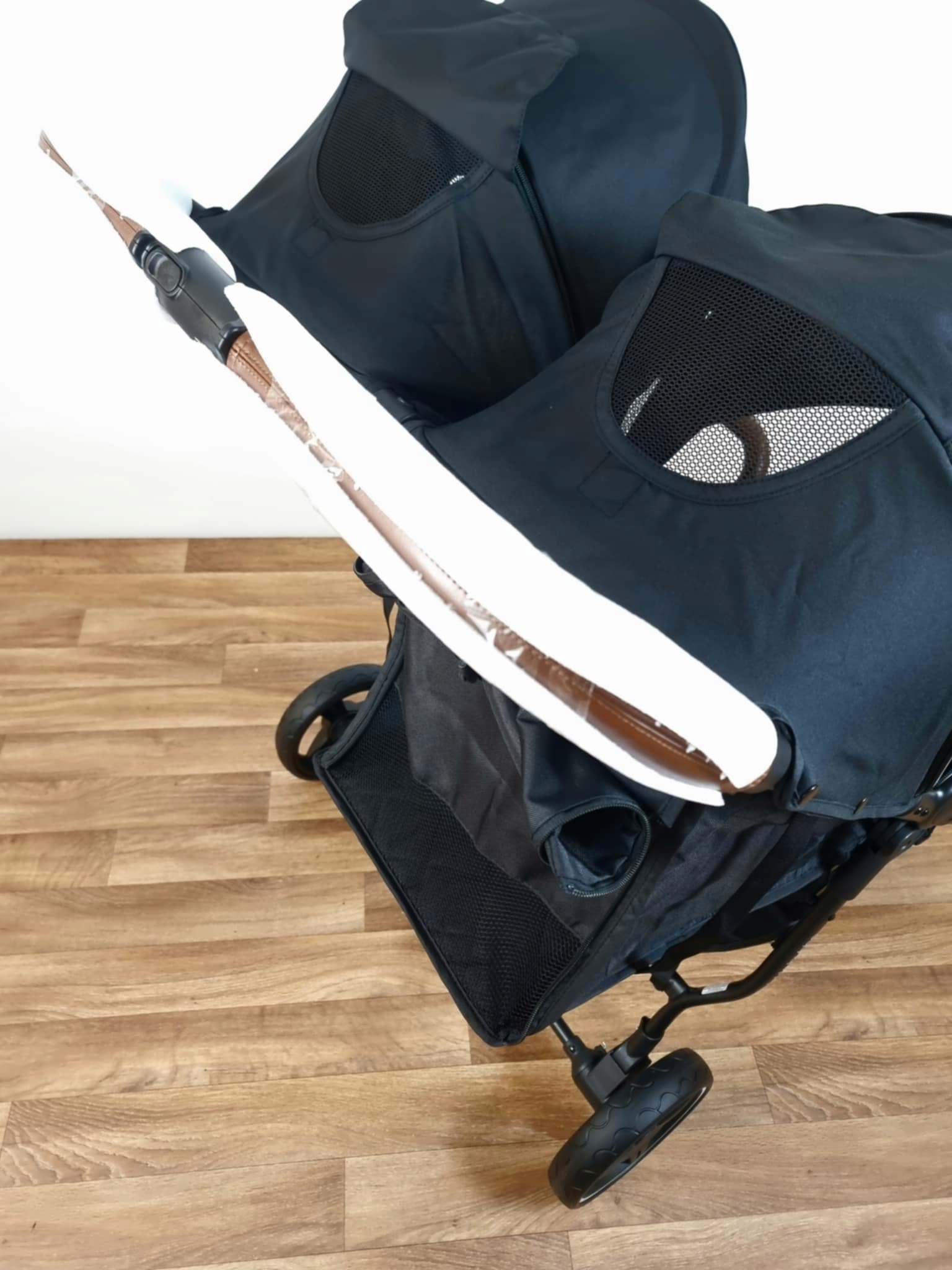 Незалежний комфорт для двох осіб - кожне сидіння можна регулювати незалежно, щоб забезпечити комфорт обом дітям. Коляска оснащена двома великими стьобаними сидіннями з кількома регульованими спинками та регульованою опорою для ніжок, тому одна дитина може лежати, а інша вставати. Бампер із двома отворами дозволяє легко посадити дітей у коляску та висадити її з неї.
