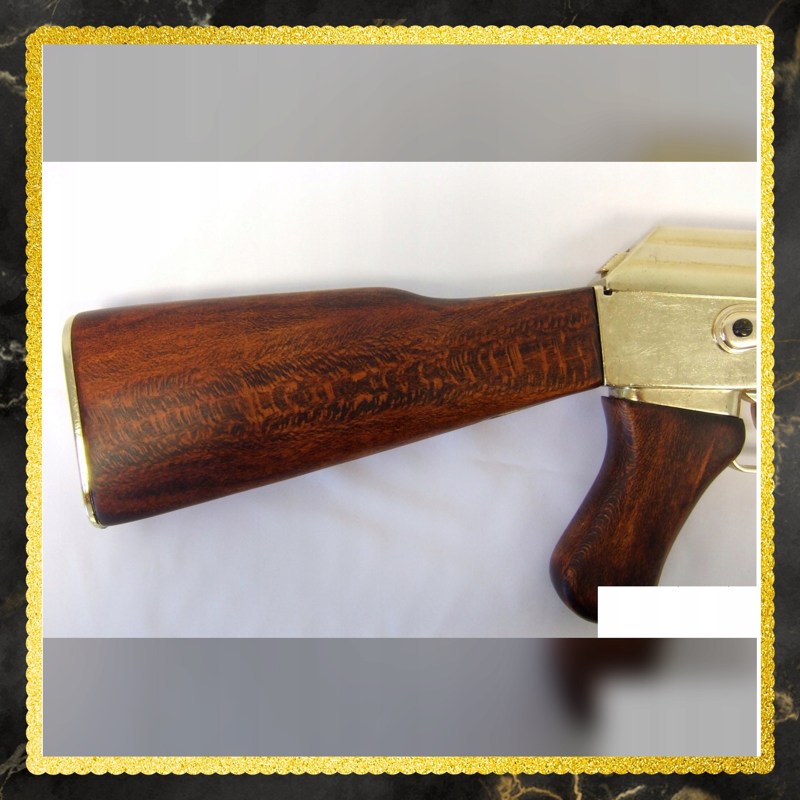 ❇️Золота копія АК-47 - це не просто макет зброї, а справжній предмет для колекціонування. Його унікальні кольори відрізняють його від стандартних копій, що робить його цінним надбанням для колекціонерів. Кожна деталь була ретельно відтворена, від спускового механізму до фактури дерев'яних елементів. Це не лише експонат, а й твір майстерності, вартість якого з часом може зрости. Володіння цією копією — це інвестиція в історію та культуру, яка радуватиме око та розум роками.