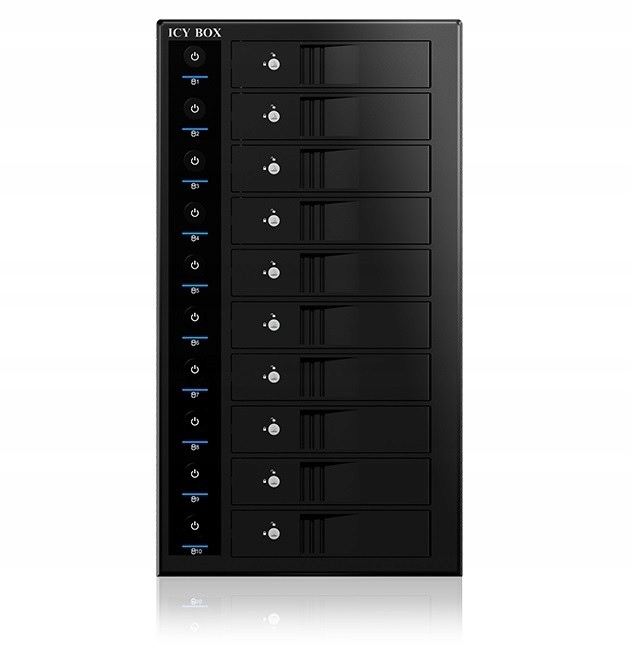 Світлодіоди в пристрої IB-3810U3 постійно інформують користувача про стан і використання жорсткого диска. IB-3810U3 дозволяє зберігати величезні обсяги даних на десяти жорстких дисках. Корпус оснащений інтерфейсом USB 3.0 з підтримкою UASP. Завдяки цьому швидкість передачі дуже висока, і у вас ніколи не вистачить місця для даних.