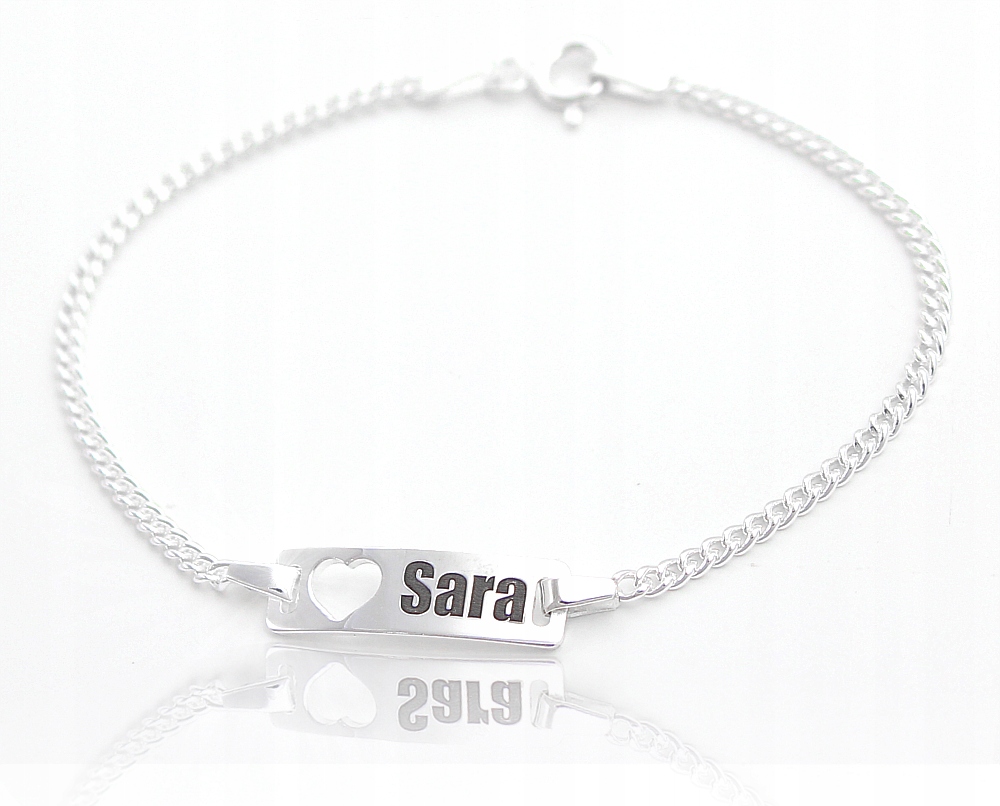 Срібний браслет ID з вирізаним серцем для гравіювання