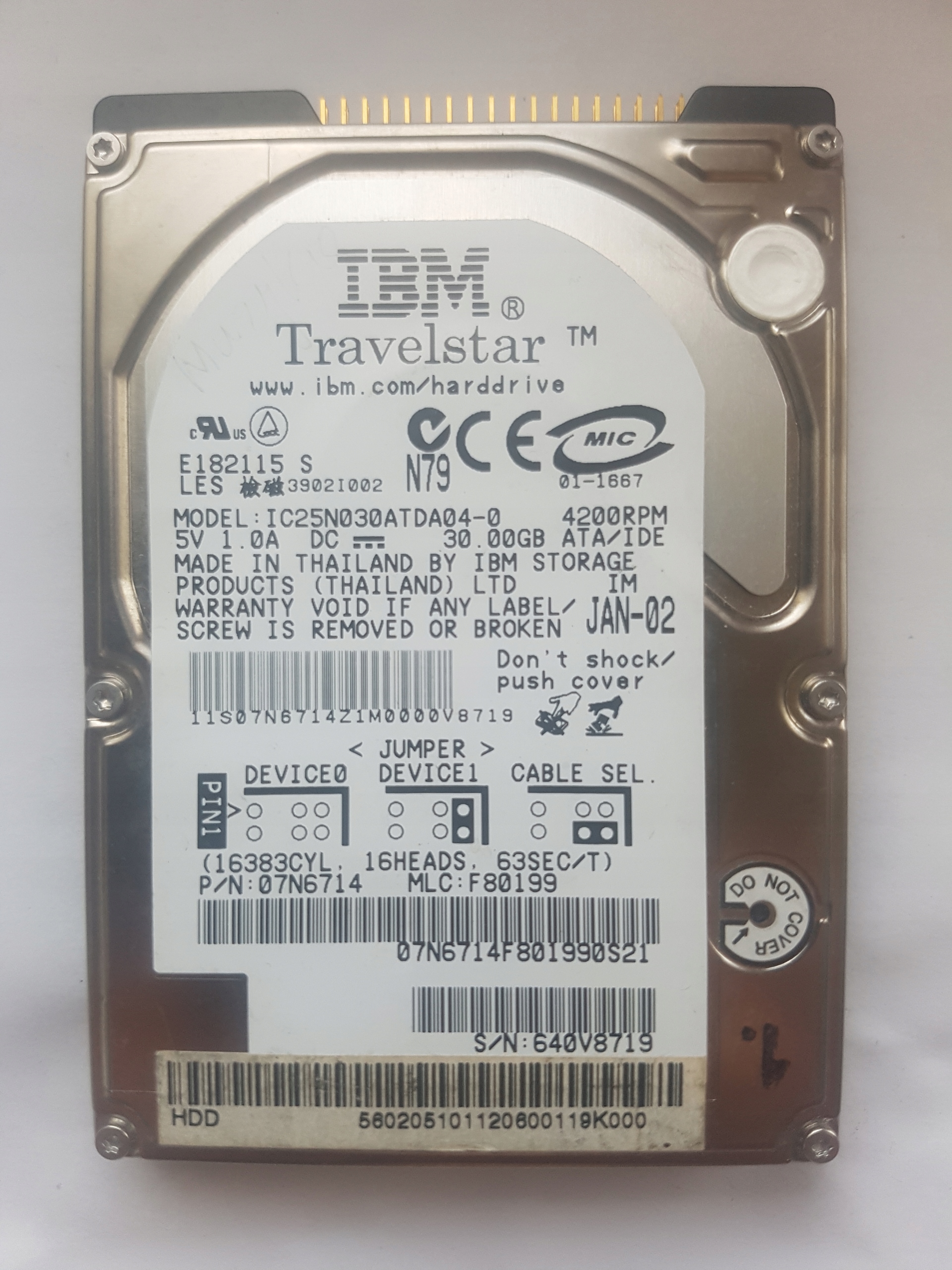 IDE ATA 2.5 "Диск IBM IC25N030ATDA04-0 30 ГБ Ретро