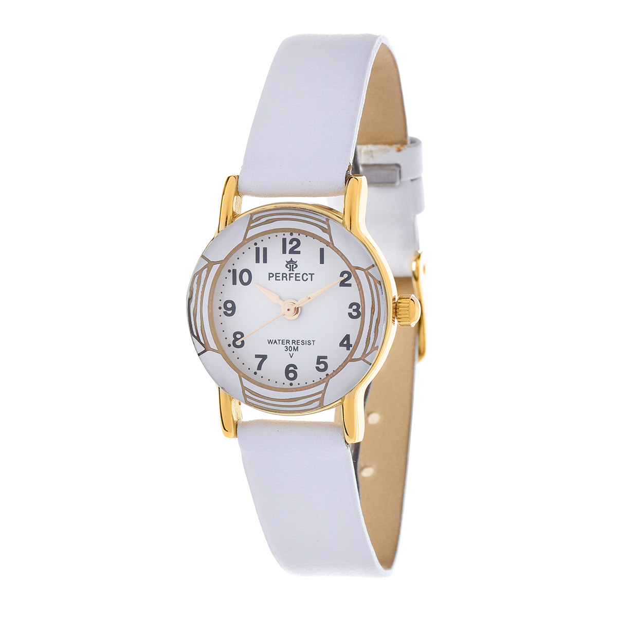 Надзвичайно делікатний дизайн - золотий корпус, золоті стрілки та вузький білий ремінець роблять його ідеальним подарунком для дівчини.