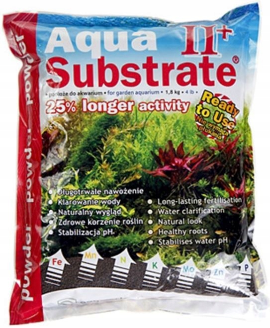 Унікальна технологія AquaSubstrate II+ Powder забезпечує освітлення води, поглинаючи її помутніння та зміну кольору. AquaSubstrate II+ зменшує жорсткість води та коригує pH-буфер, встановлюючи його значення в ідеальному діапазоні приблизно 6,5-7,0 для рослин і тварин з тропічних біотопів з м’якою водою.