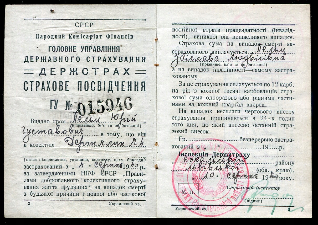 Ідентифікаційна картка СРСР - полюс комуністичного страхування 1940 року