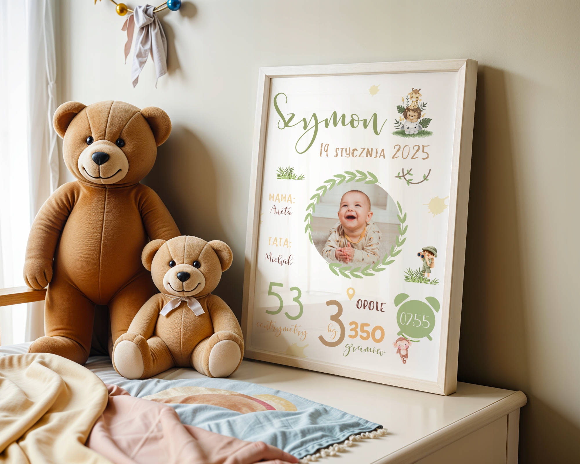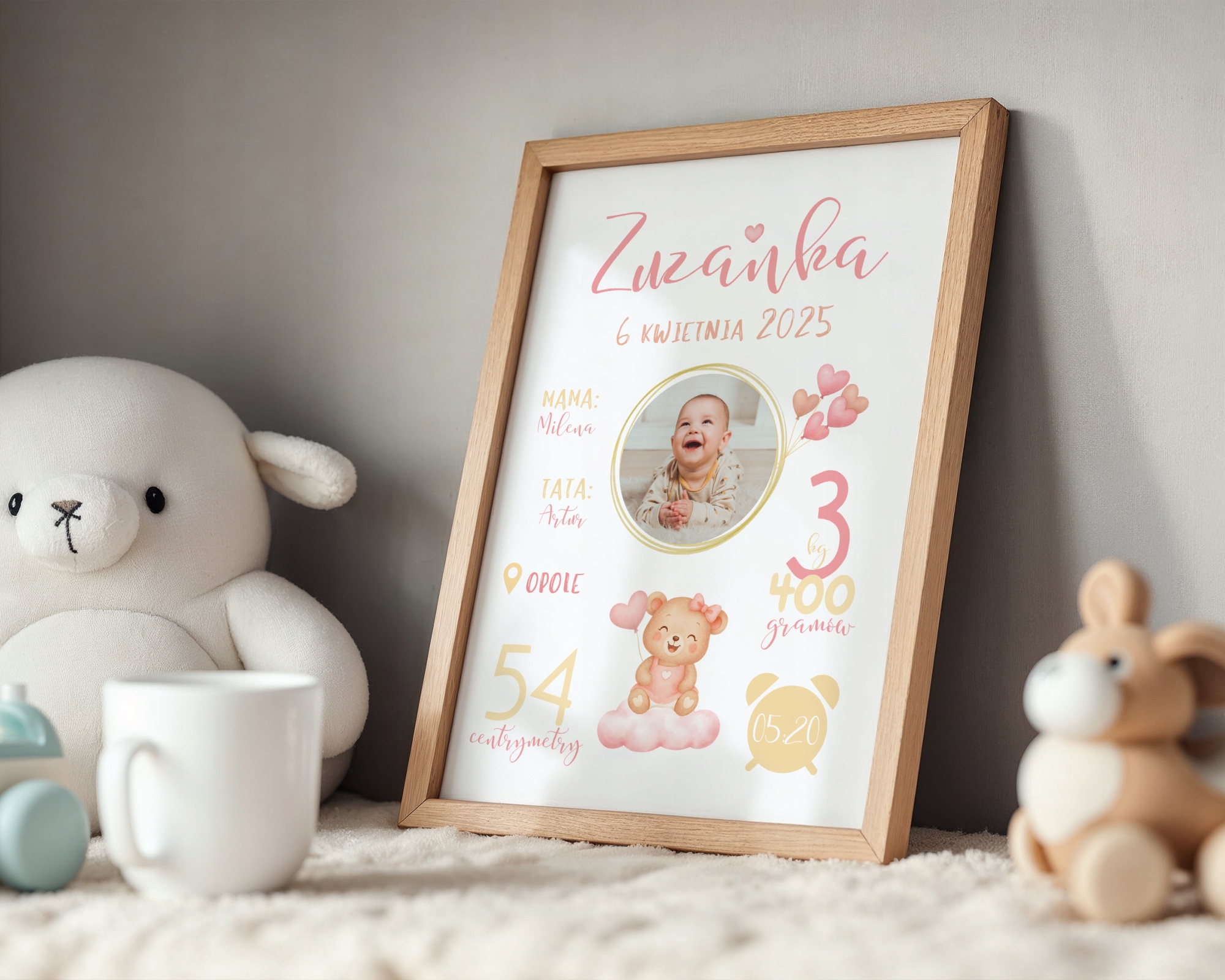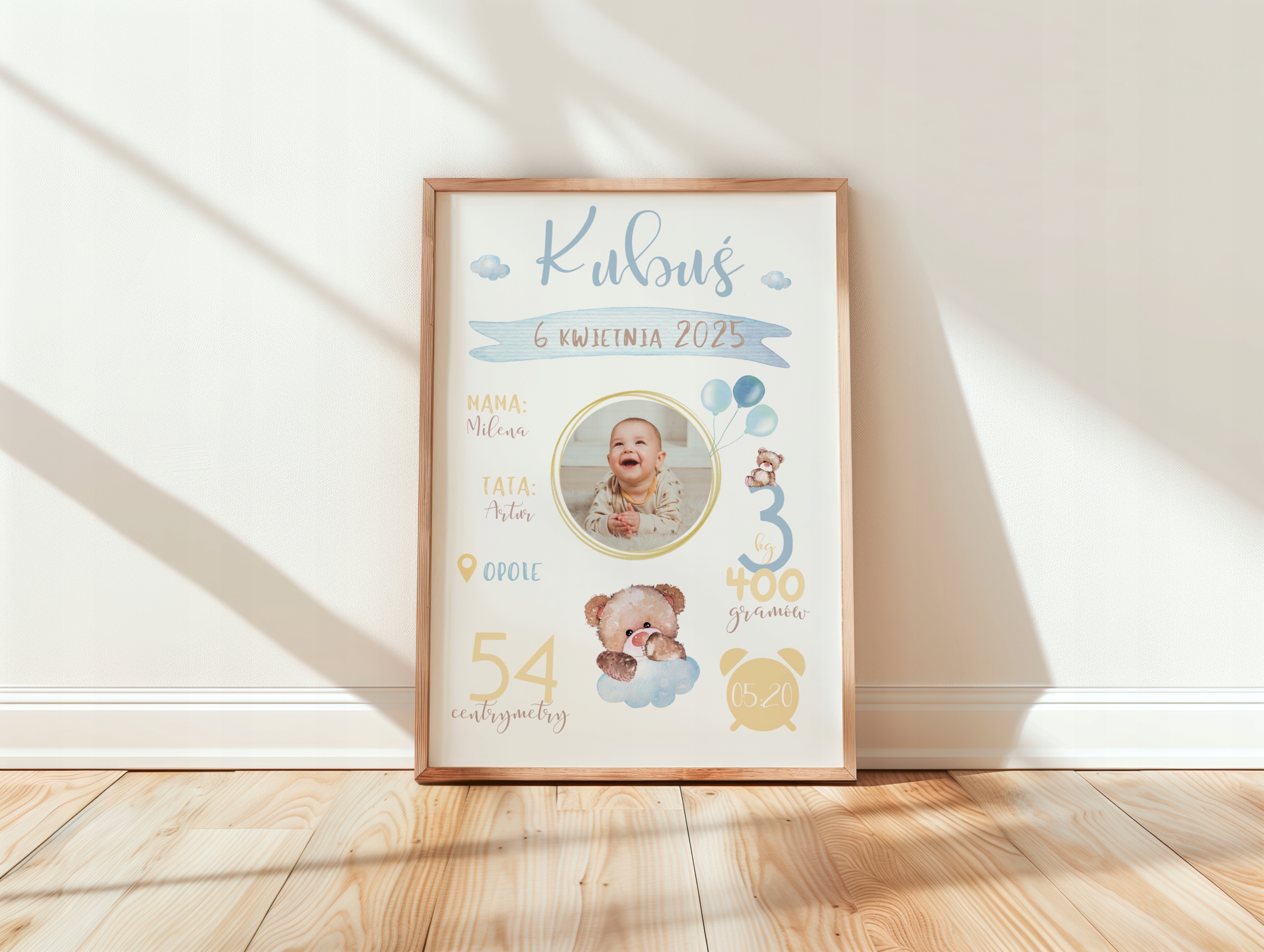 Наше персоналізоване свідоцтво про народження А4 з фотографією - це поєднання елегантності, емоцій і непідвладного часу сувеніру. Кожен екземпляр створюється індивідуально, що робить його прекрасною прикрасою дитячої кімнати та унікальною пам’яттю на довгі роки.
