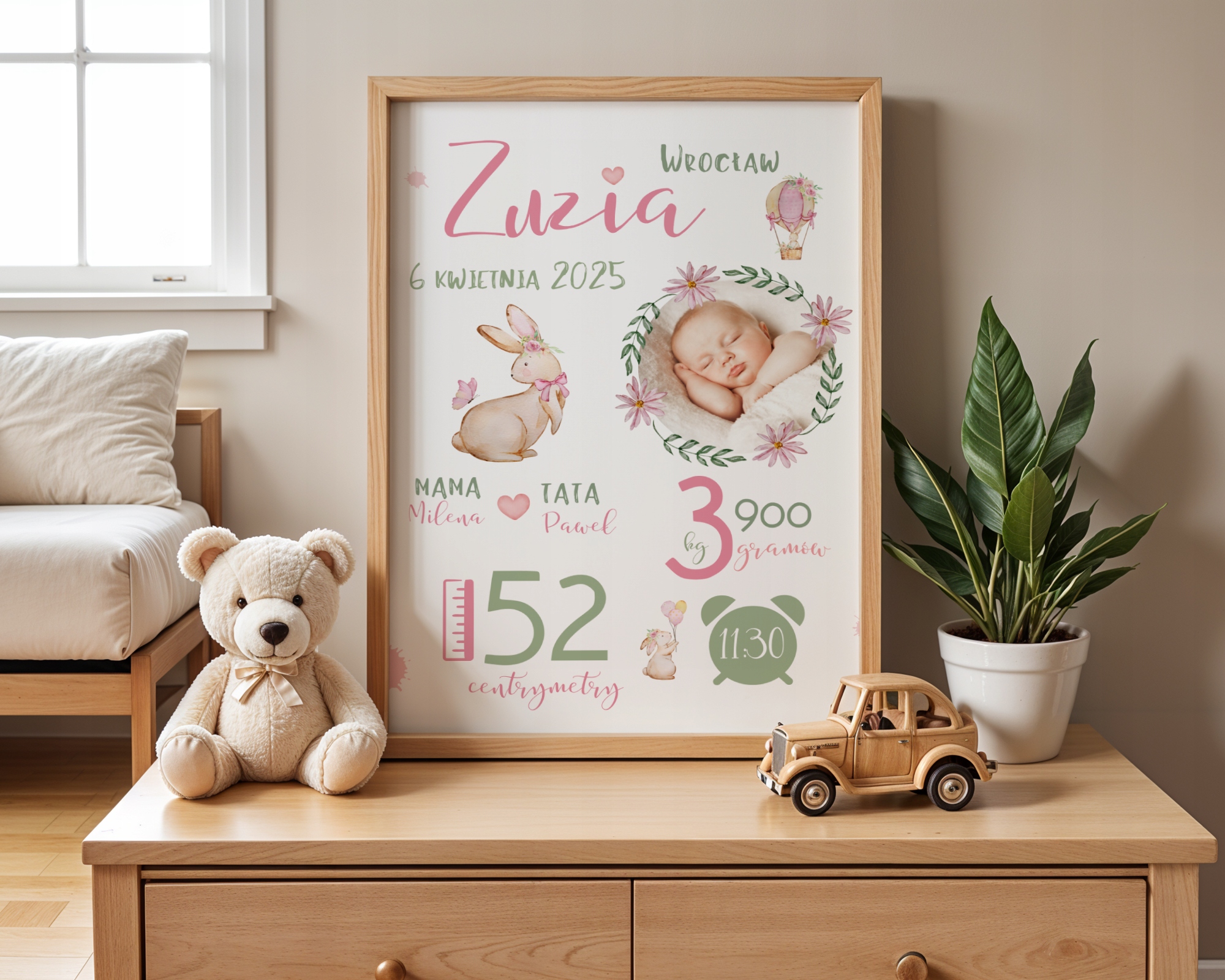 ✅ Повна персоналізація - ім'я, дата, місце і час народження, вага, зріст, імена батьків - повний пакет