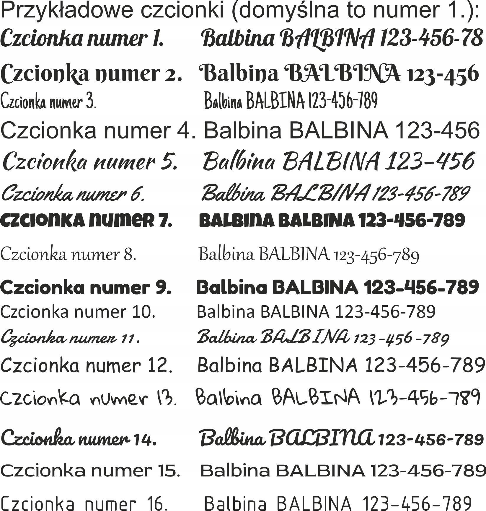 Сторінка 1: Шрифт № 1 Текст: Azorek тел.: 123-456-789 Графіка: 1 (Лапа) - Обережно з малими та великими літерами