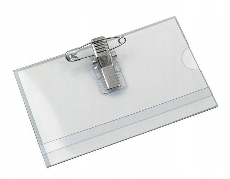 Ідентифікатор з прозорого, жорсткого матеріалу, оснащений пружинним затискачем і невеликою шпилькою. У комплект входить картонна коробка з надрукованою рамкою для введення даних користувача. Картонну коробку можна обміняти на візитку або інший документ, що посвідчує особу. Це полегшує ідентифікацію людей і покращує безпеку у вашій компанії.