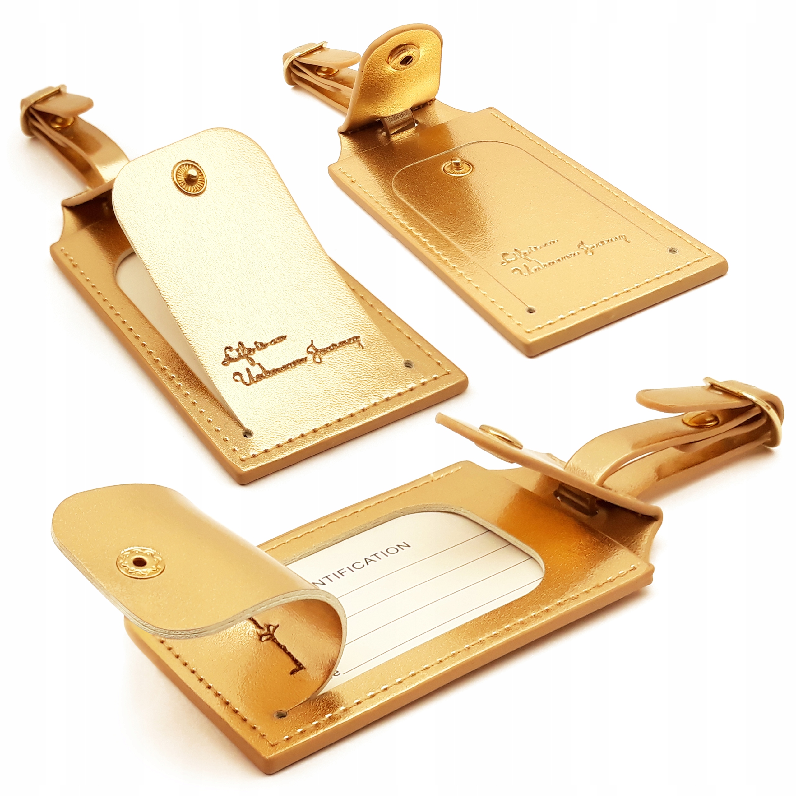 Предметом пропозиції є КОМПЛЕКТ,ID бирка-багажна бирка(1шт) тапаспортна кейс для документів (1 шт.) з екошкіри золотого кольору. На адреснику напис «Life is an Unknown Journey», на футлярі напис «Life is for Adventures». Це ідеальний спосіб позначити свій багаж під час подорожі та організувати необхідні документи.