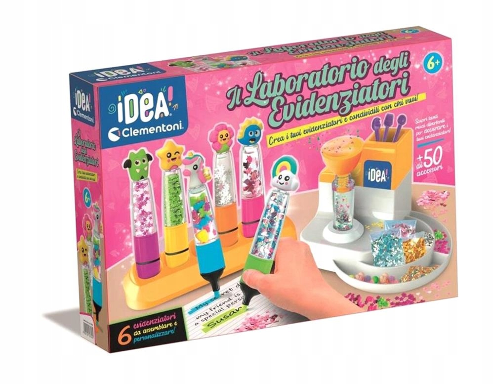 Оригінальна творча лабораторія для веселощів, створюючи багато барвистих МАРКЕРІВ! Новий набір Idea, який дозволяє дітям створювати та персоналізувати свої маркери за допомогою багатьох аксесуарів та прикрас. Зручний стіл для вправ і багатий набір інструментів, які підтримують гру, дають приголомшливий ефект! Діти зможуть зробити набагато більше, ніж просто персоналізувати маркер: вони займуться справжньою творчістю! Розроблено та спроектовано в Італії.