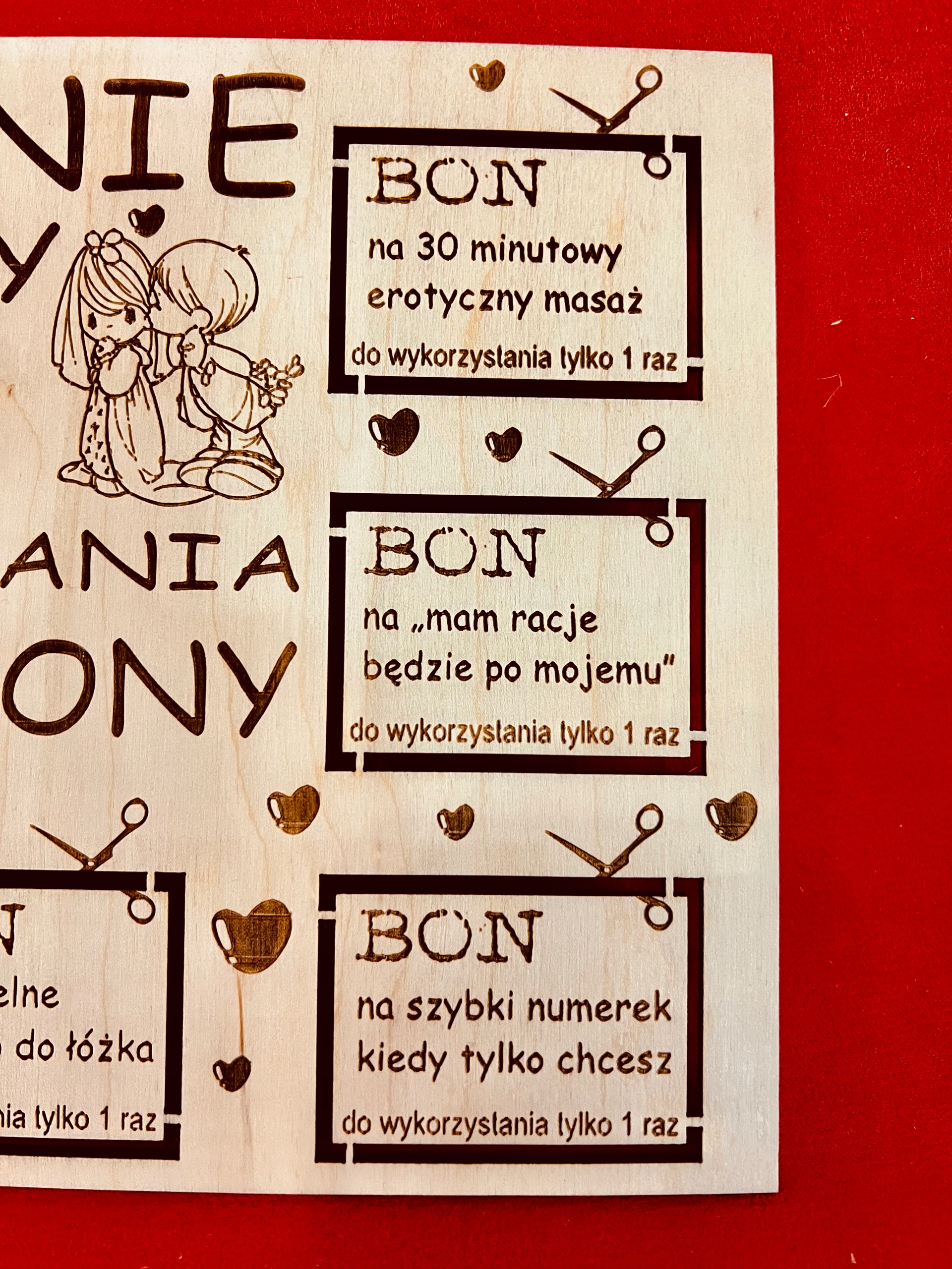 Таблиця з фанери з гравіруванням та купонами, які б'ються.