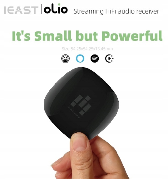 iEAST olio — це інноваційний приймач потокового аудіо Hi-Fi , оснащений бездротовим з’єднанням Wi-Fi та Bluetooth, який може перетворити наявні динаміки, звукові панелі чи домашні кінотеатри на бездротову мультикімнатну звукову систему, під’єднавшись до вашої домашньої мережі Wi-Fi.