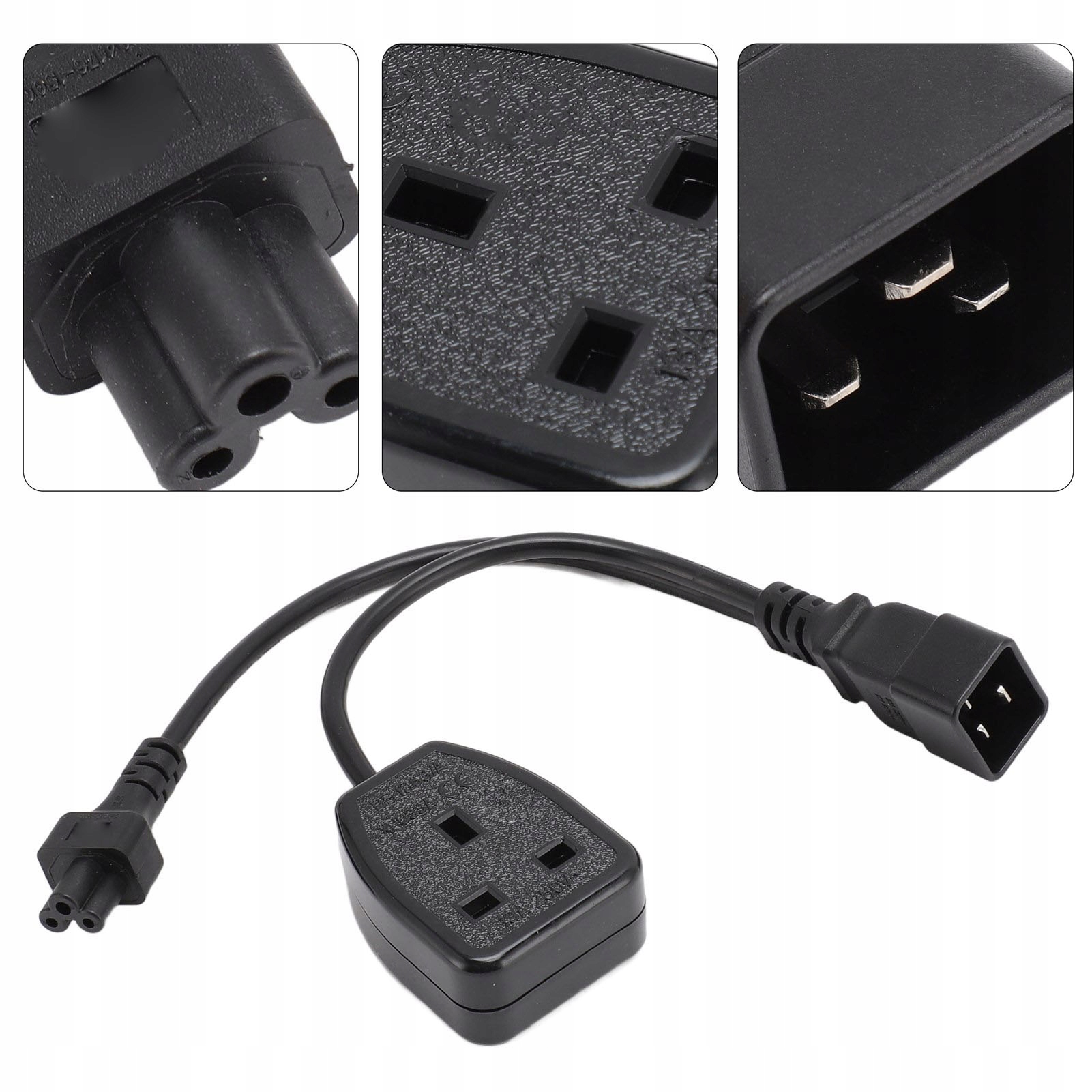 1. 1 ВХІД 2 ВИХІД: кабель живлення з Y-розгалужувачем, конструкція з 1 на 2 виходи, перетворює стандартний штекерний роз’єм IEC320 C20 на роз’єм C5 і британський стандартний гніздо. Безпечно та допомагає підтримувати порядок у вашому столі чи домі.