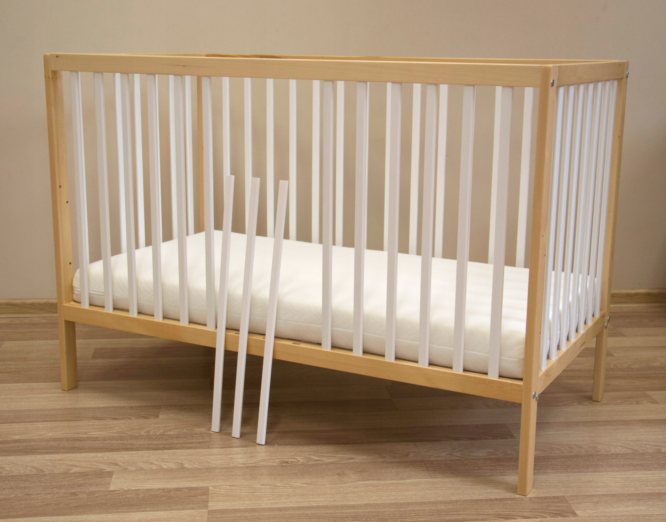 - Набір гвинтів, необхідних для складання ліжечка, включено